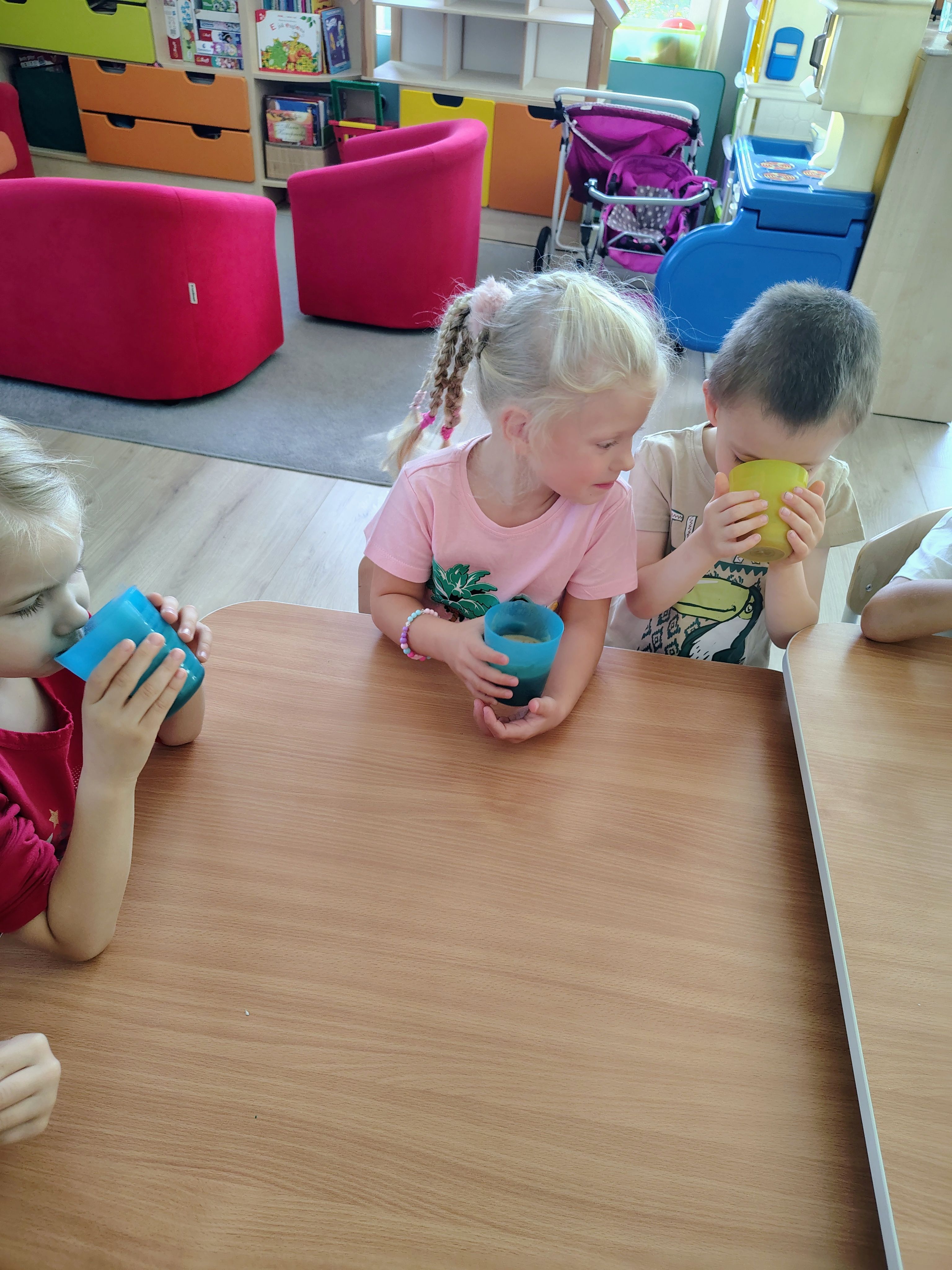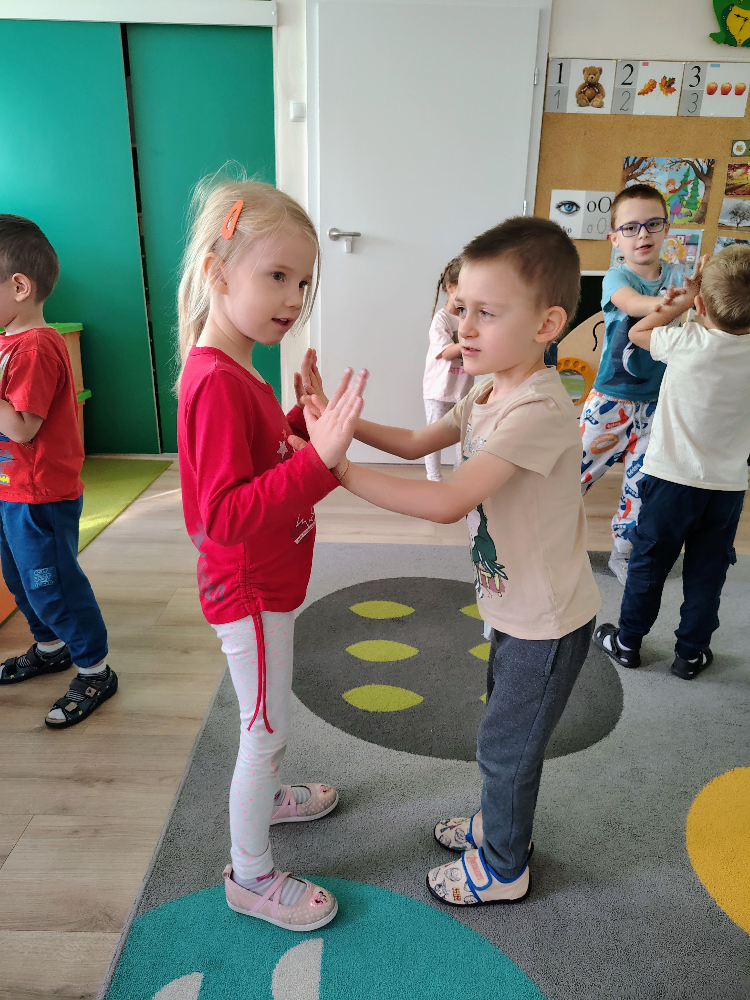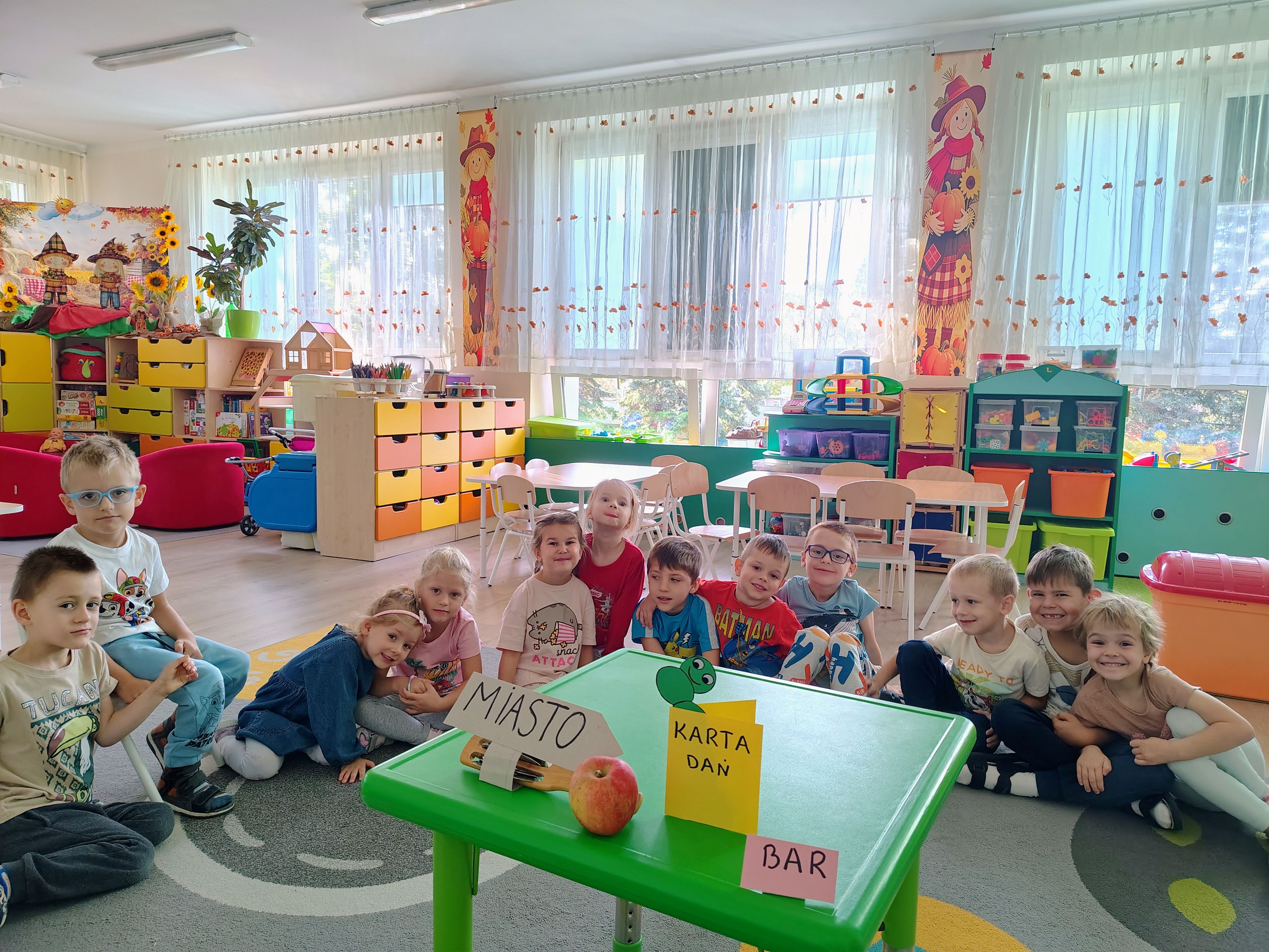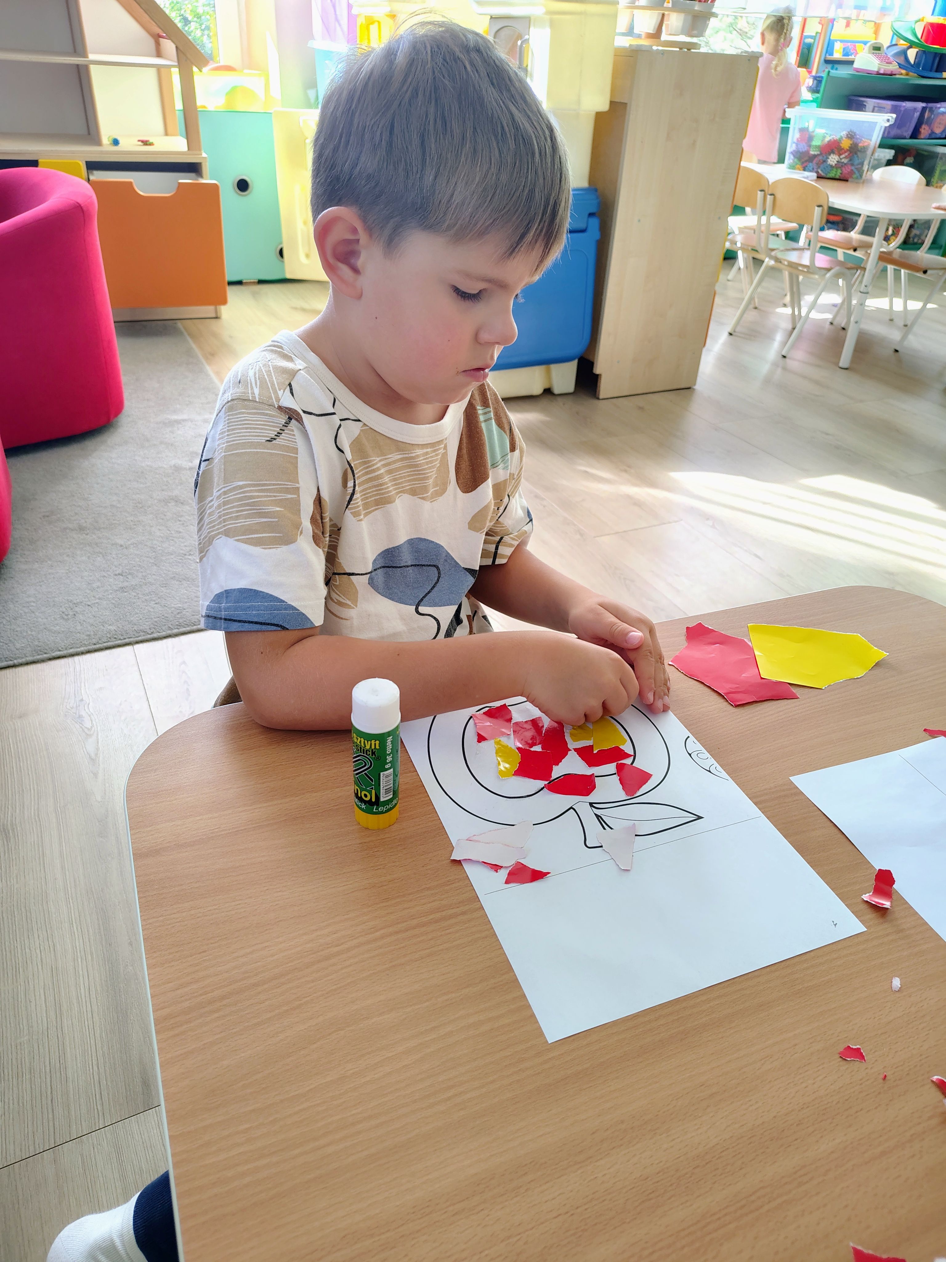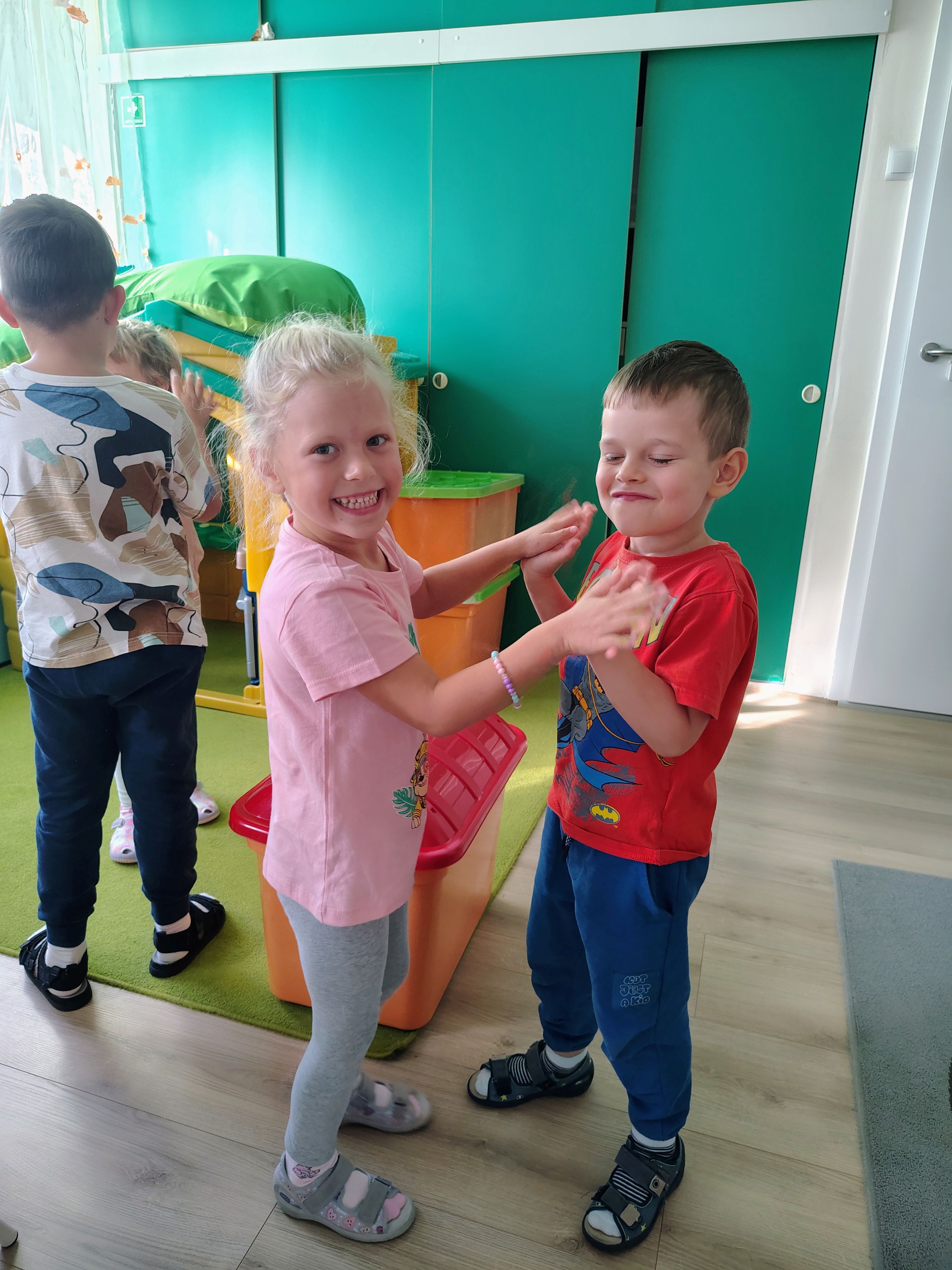 Nasze przedszkole zamieniło się w prawdziwy sad pełen radości i zdrowych smaków. Dzieci wysłuchały znanego wierszyka „Entliczek, pentliczek”, opisywały wygląd i cechy jabłek, a także poznały wiele ciekawostek na ich temat. Nie zabrakło również sportowych emocji – odbyły się zawody zręcznościowe w łapaniu jabłek oraz w wyciskaniu z nich soku. Największą atrakcją było poznanie działania sokowirówki i samodzielne przygotowanie przepysznego, naturalnego soku jabłkowego. Na zakończenie dzieci wykonały twórczą pracę plastyczną – wydzierankę i wyklejankę w kształcie jabłka, która pięknie podsumowała nasze jabłkowe święto. Był to dzień pełen uśmiechu, ruchu i zdrowych smaków – a jabłko stało się prawdziwym bohaterem!