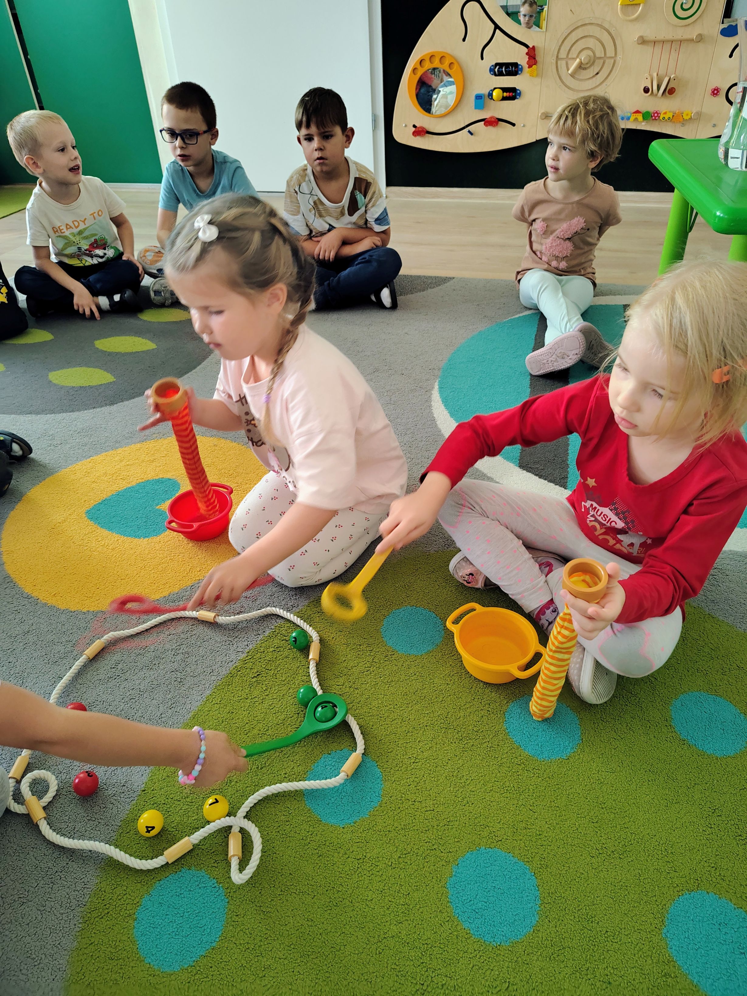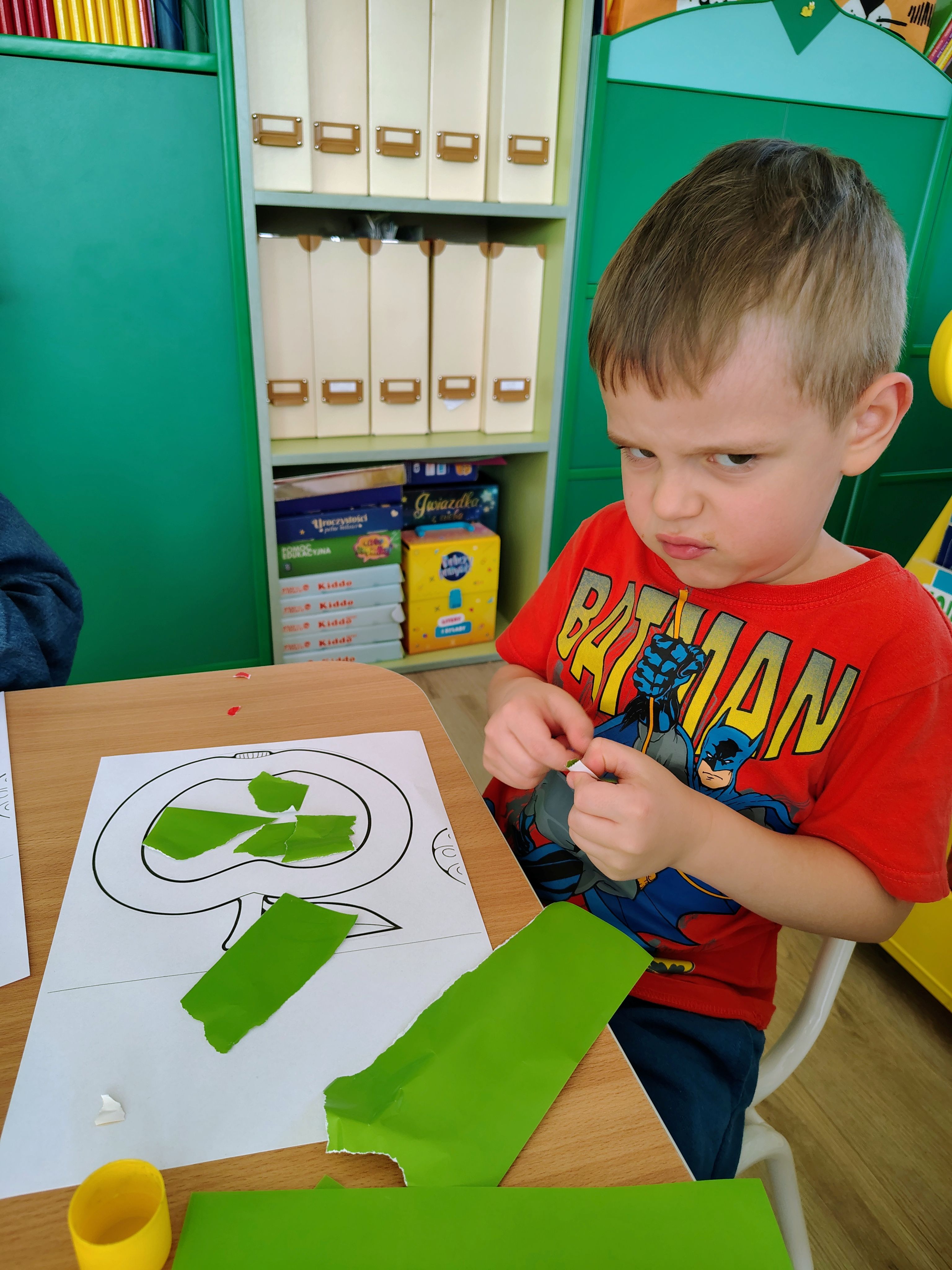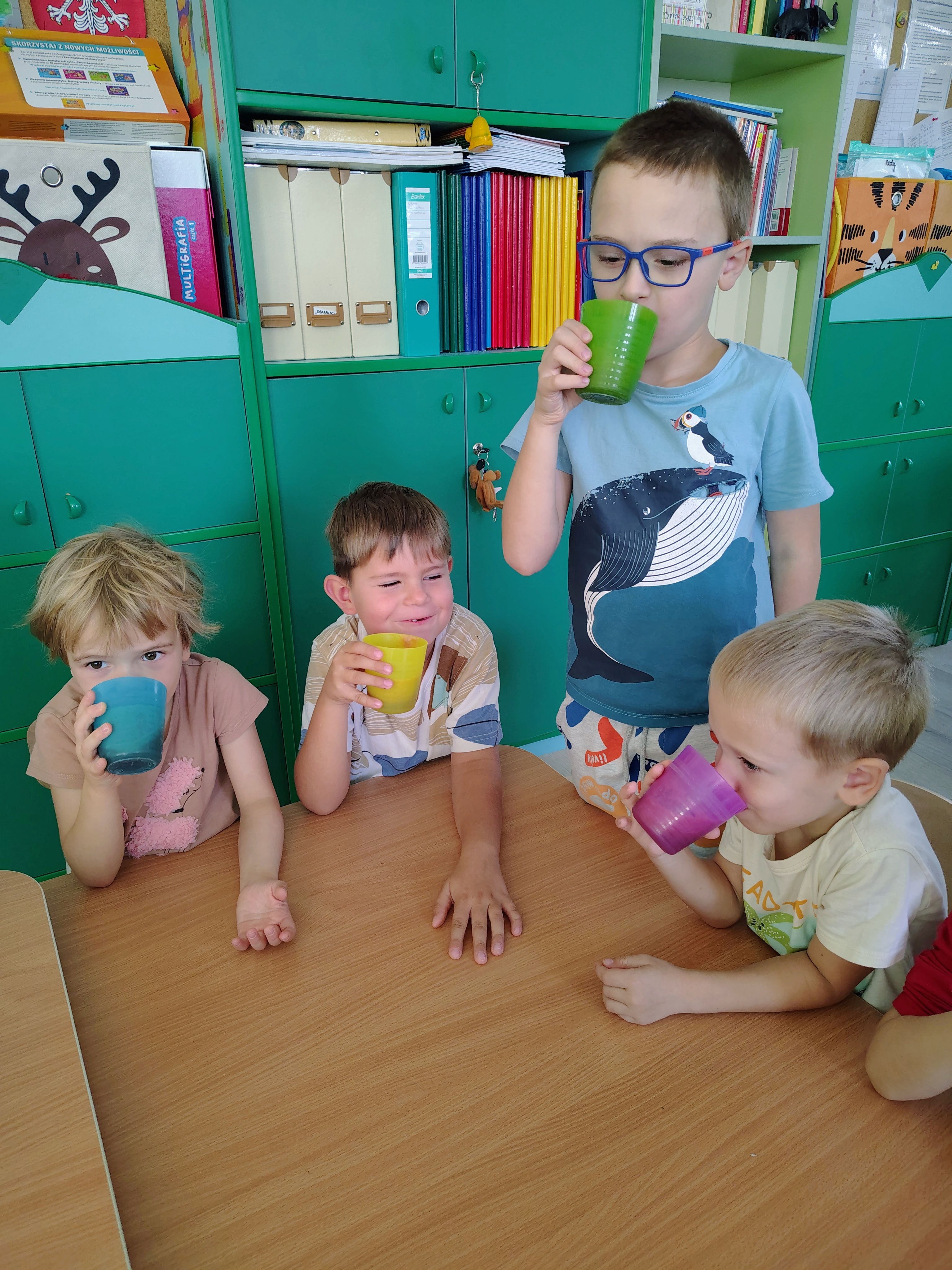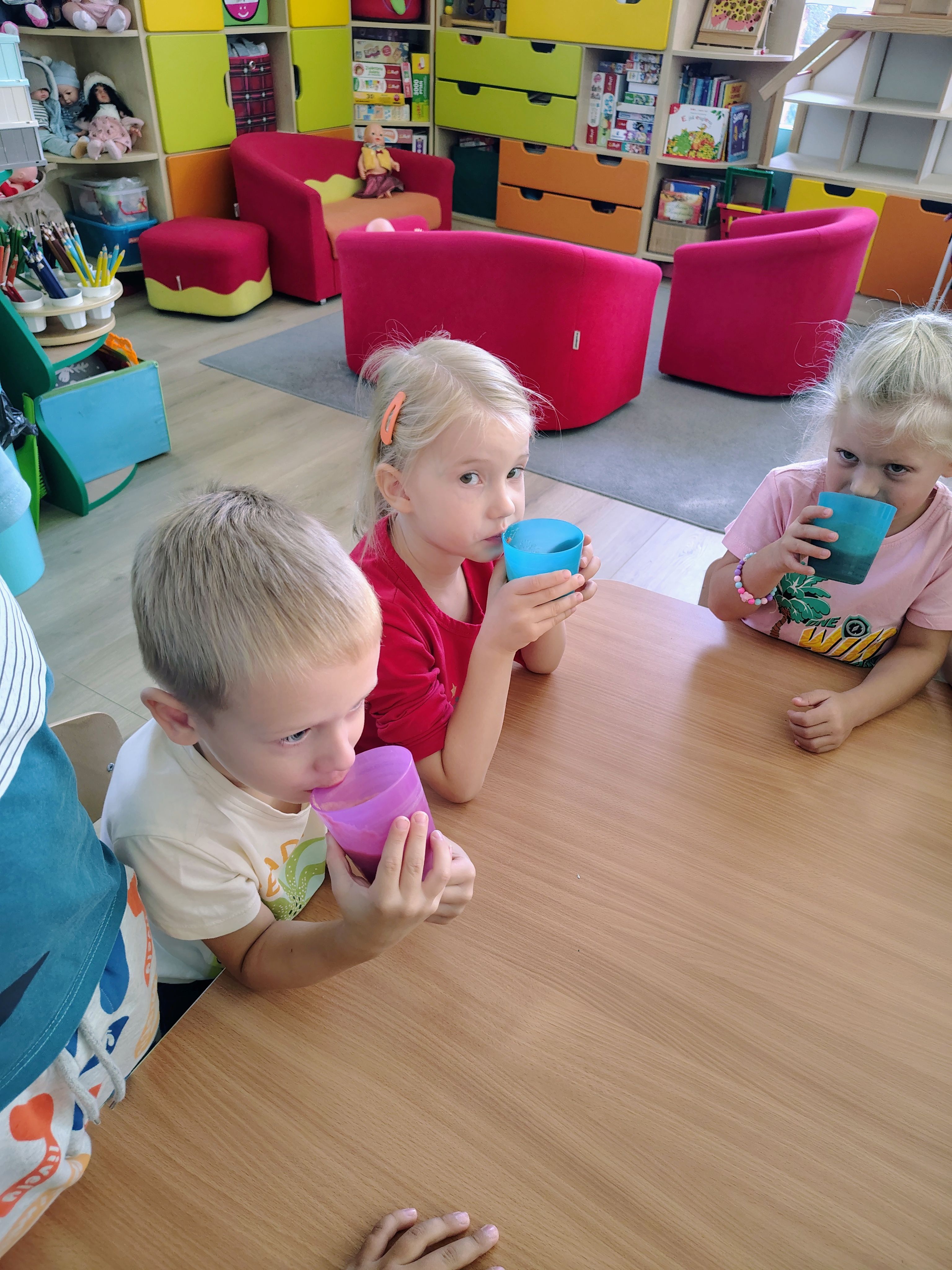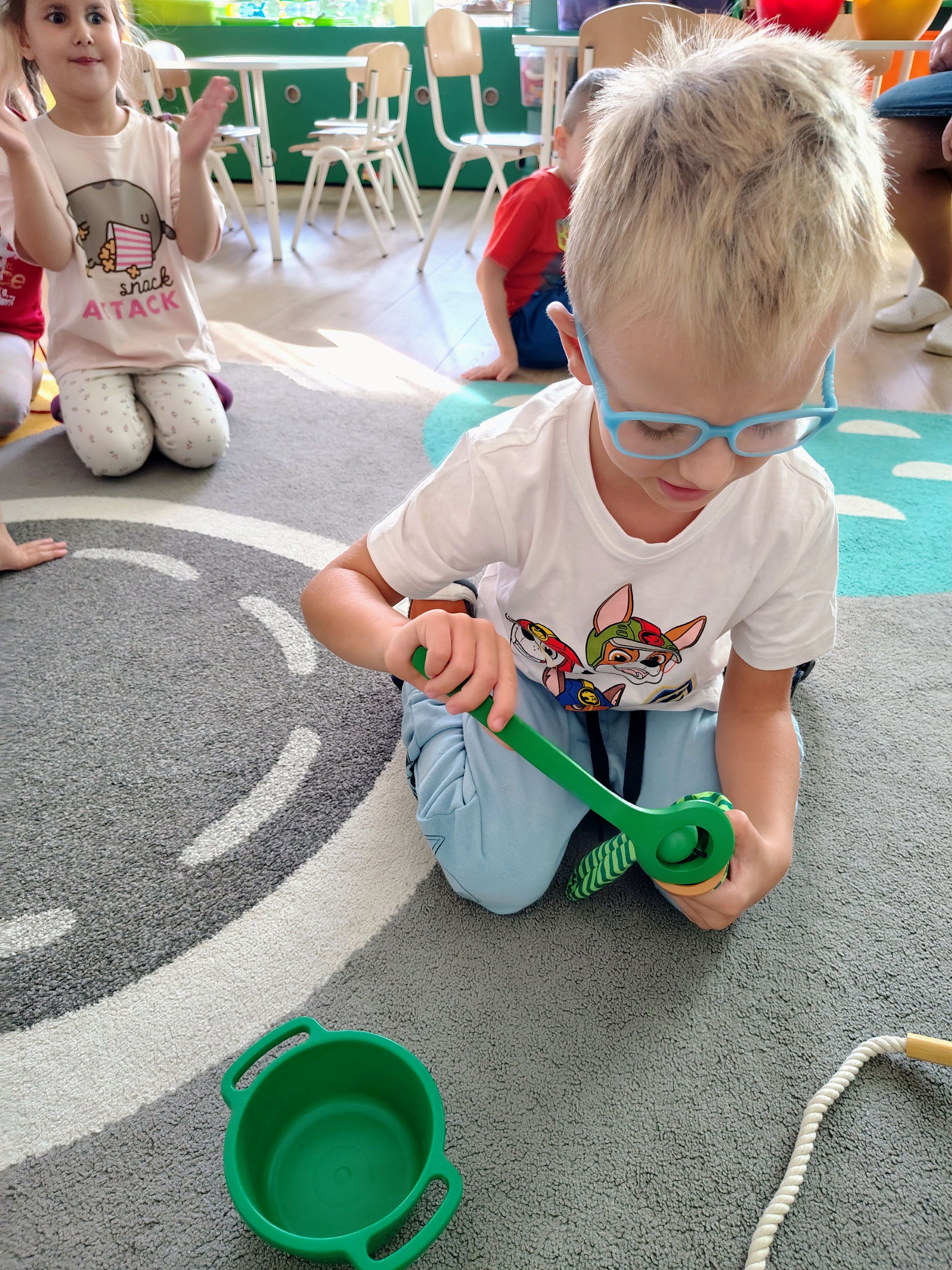 Nasze przedszkole zamieniło się w prawdziwy sad pełen radości i zdrowych smaków. Dzieci wysłuchały znanego wierszyka „Entliczek, pentliczek”, opisywały wygląd i cechy jabłek, a także poznały wiele ciekawostek na ich temat. Nie zabrakło również sportowych emocji – odbyły się zawody zręcznościowe w łapaniu jabłek oraz w wyciskaniu z nich soku. Największą atrakcją było poznanie działania sokowirówki i samodzielne przygotowanie przepysznego, naturalnego soku jabłkowego. Na zakończenie dzieci wykonały twórczą pracę plastyczną – wydzierankę i wyklejankę w kształcie jabłka, która pięknie podsumowała nasze jabłkowe święto. Był to dzień pełen uśmiechu, ruchu i zdrowych smaków – a jabłko stało się prawdziwym bohaterem!