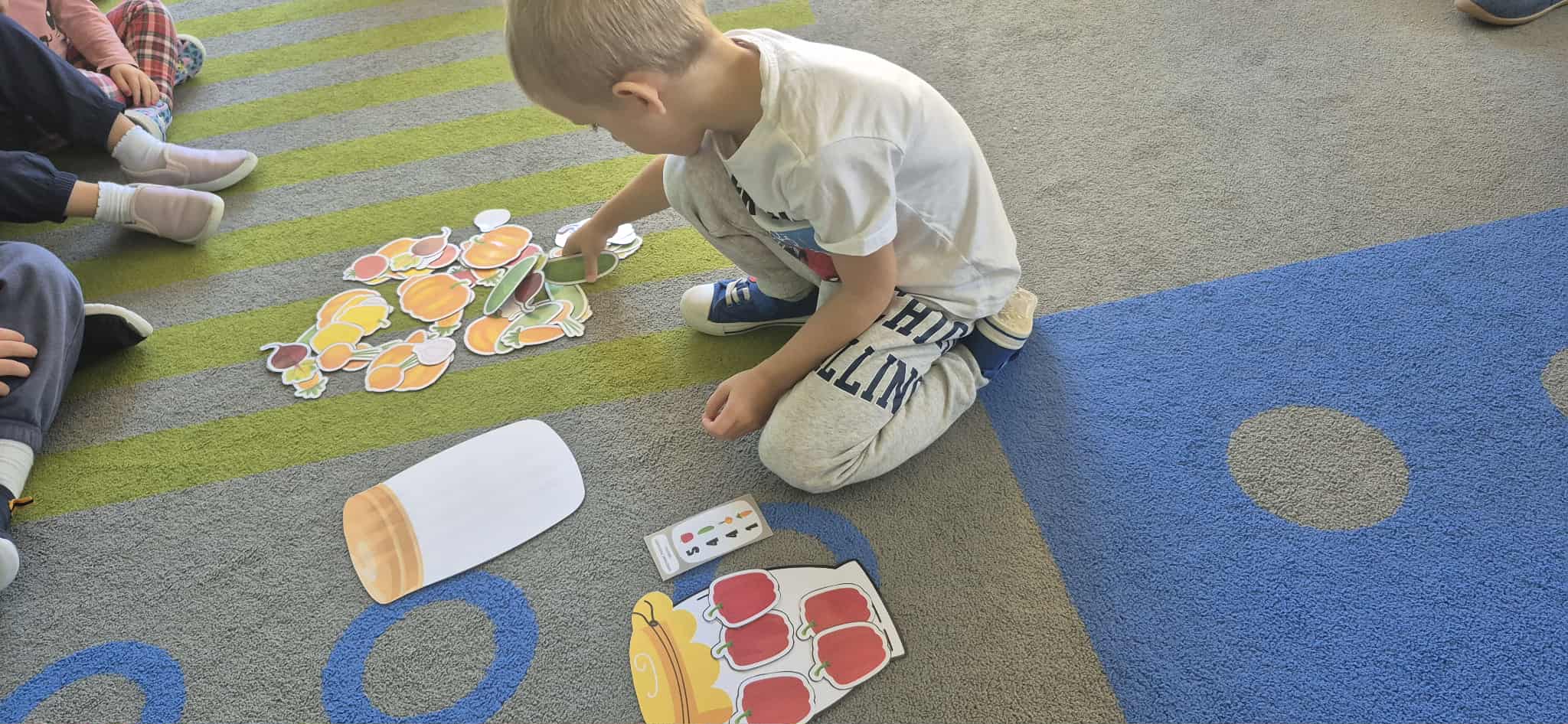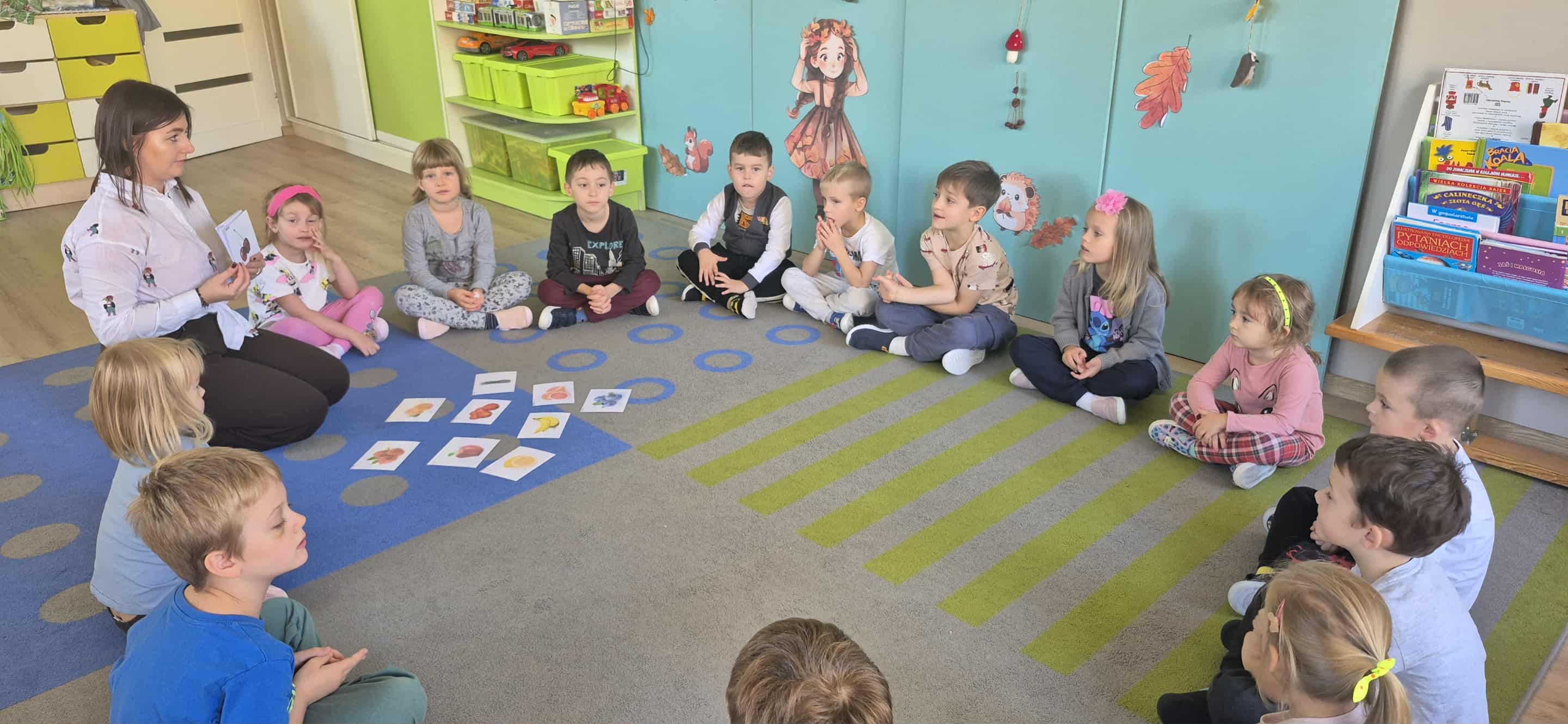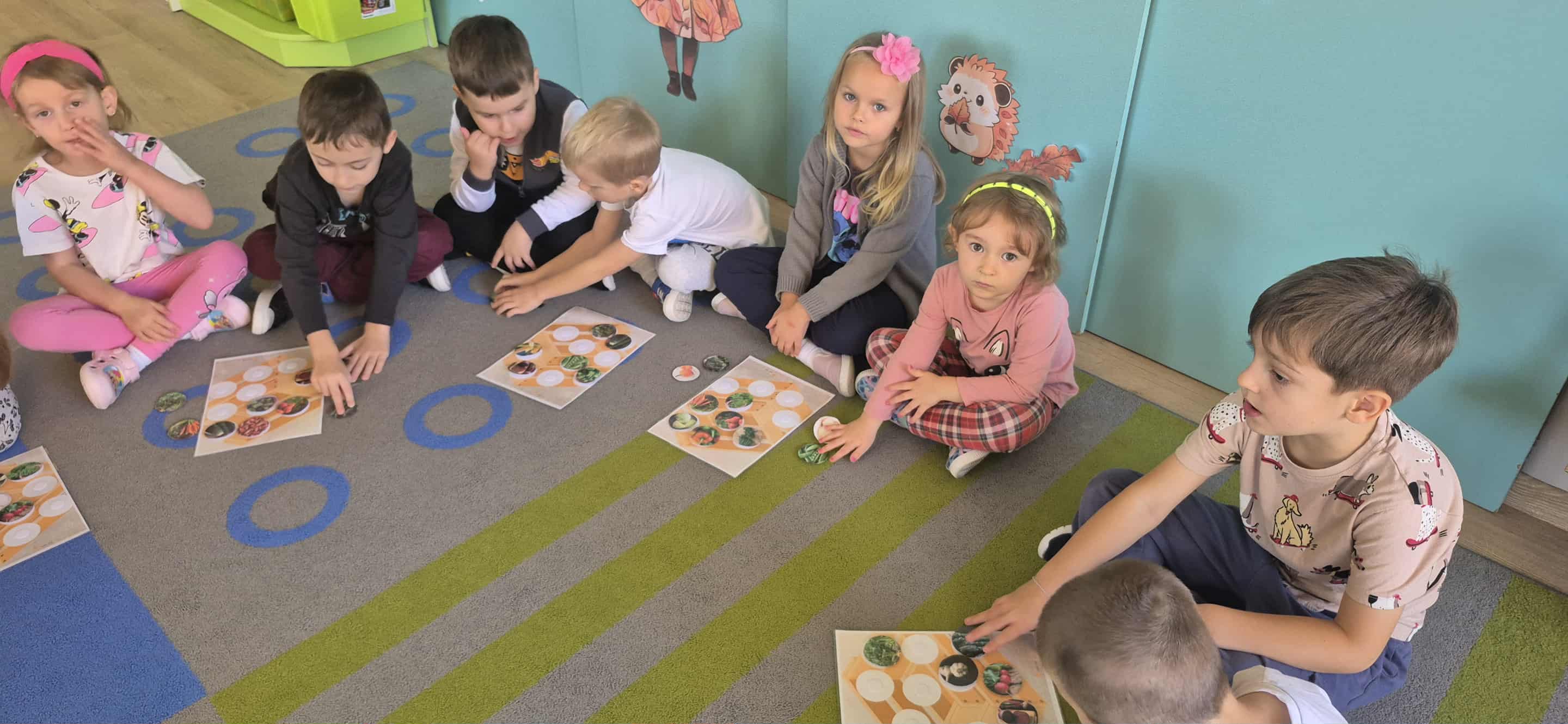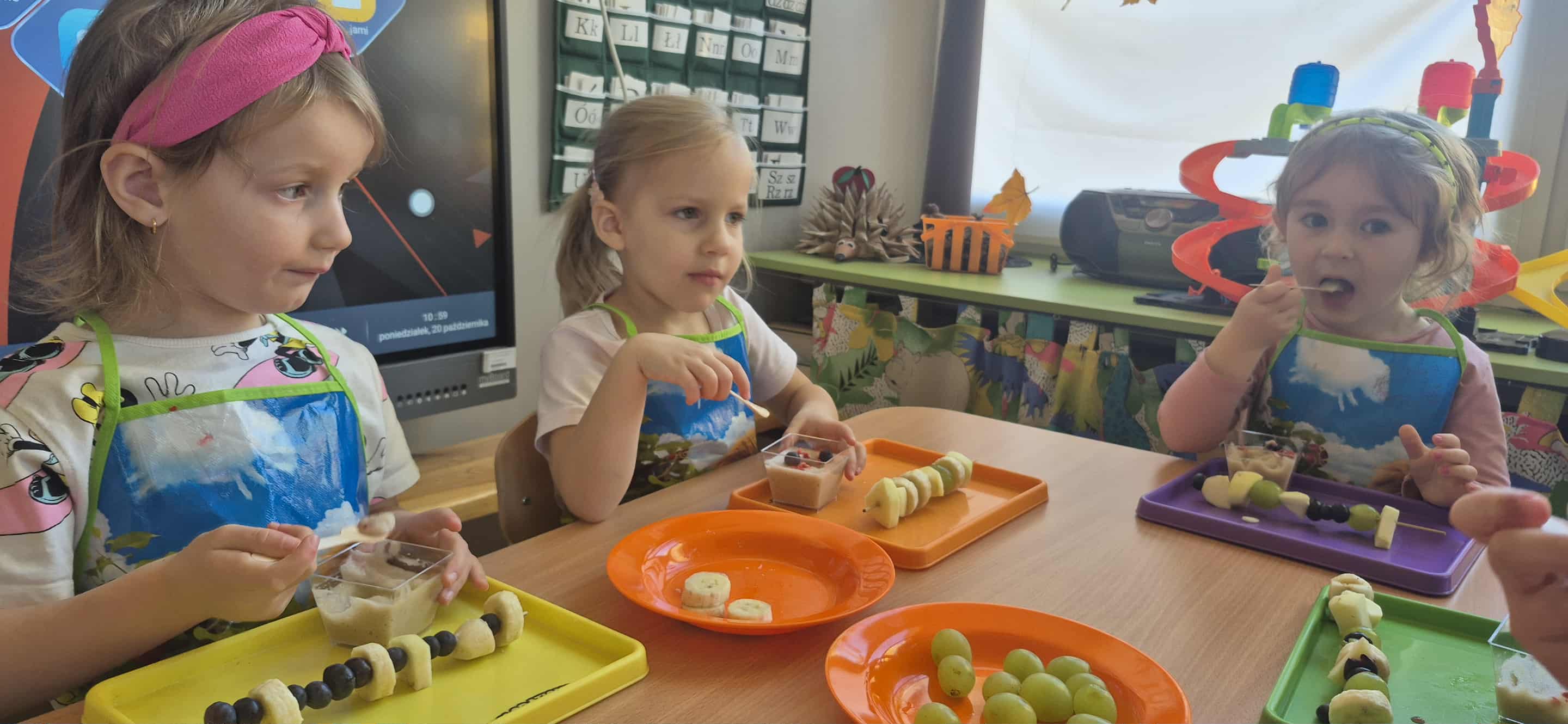 Przedszkolaki z grupy 5 w ramach innowacji pedagogicznej pt. "Nietypowe święta w przedszkolu" obchodziły "Dzień Warzyw i Owoców". Dzieci rozpoznawały owoce i warzywa, segregowały je na poszczególne grupy, grały w warzywne bingo, dyskutowały o tym, że owoce i warzywa są bardzo zdrowe i należy je jeść codziennie. Wykonały także samodzielnie owocowe szaszłyki oraz zajadały się pysznym musem owocowym przygotowanym przez Panie nauczycielki.