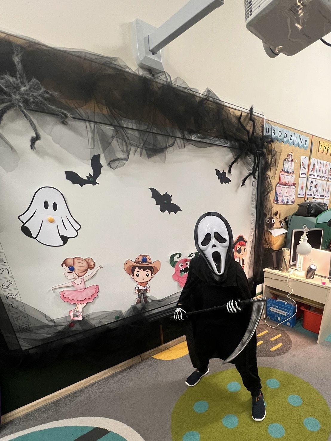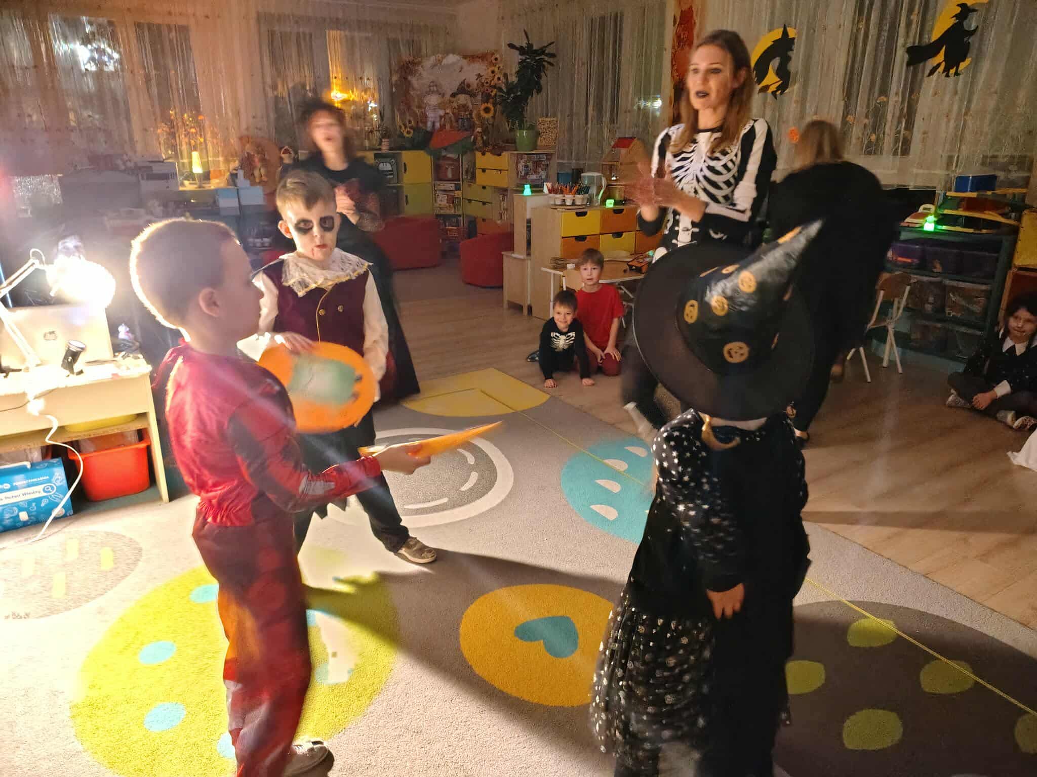 Czy w naszym przedszkolu straszny? W żadnym wypadku….chociaż dzisiejszy wieczór sprawił, że niektórzy z nas mieli ciarki na plecach. Odwiedziły nas kościotrupy, wiedźmy, szalone dynie, wampiry oraz inne niemniej potworne postacie. I wiecie co? Nikt się nie przestraszył, było za to mnóstwo śmiechu i zabawy. Strasznie fajnie pobawić się w tak osobliwym gronie. Knock knock trick or treat?