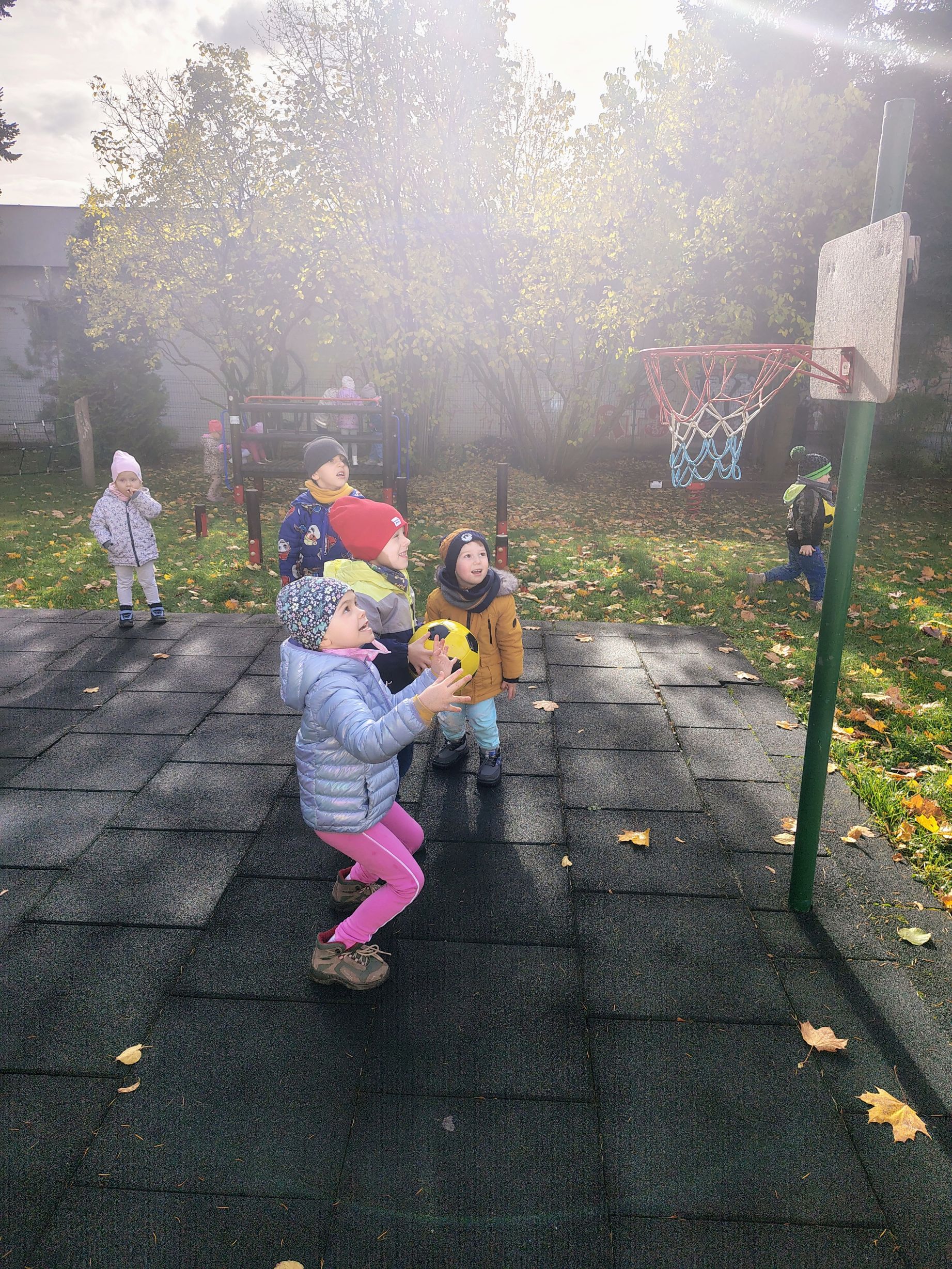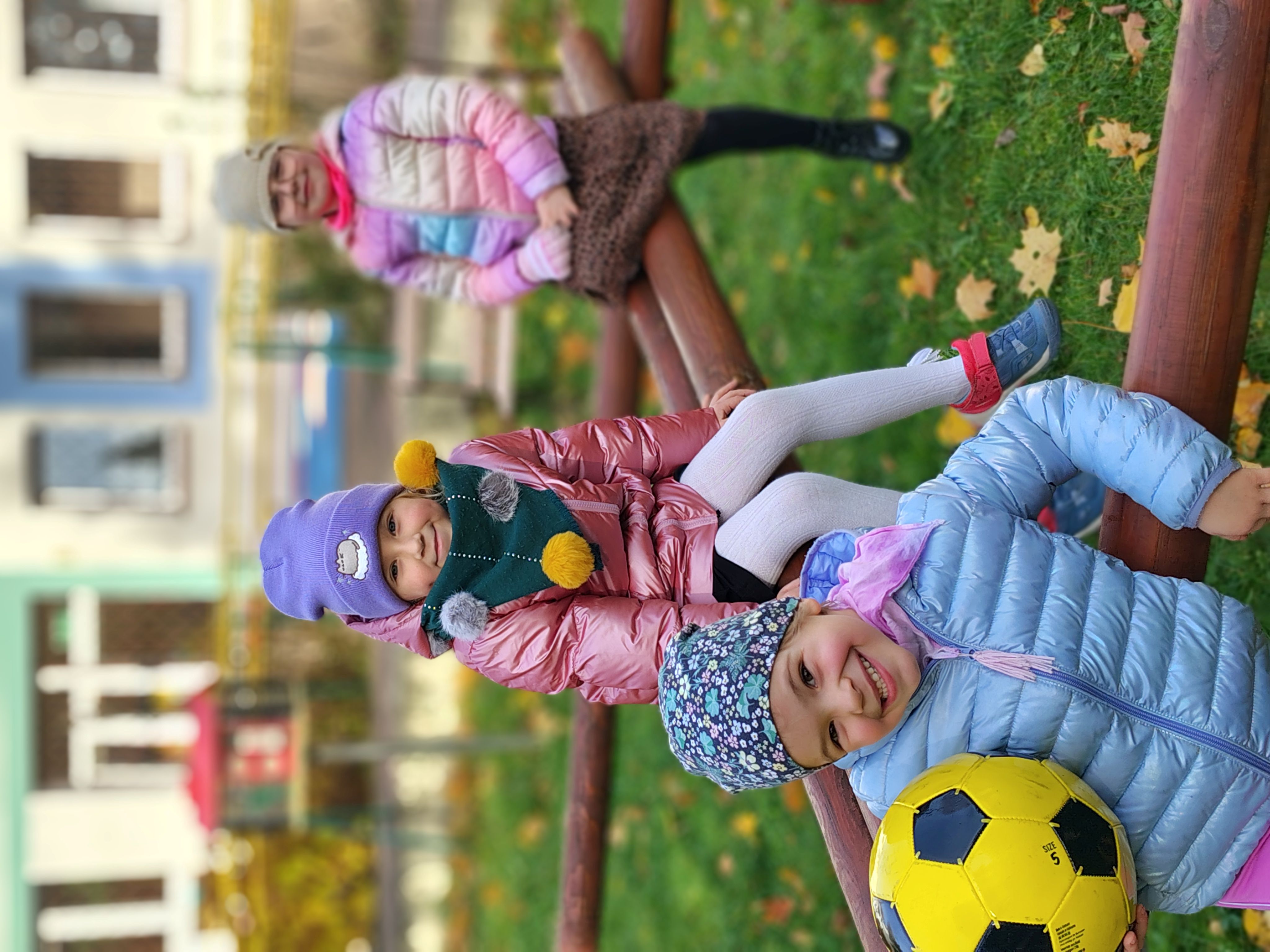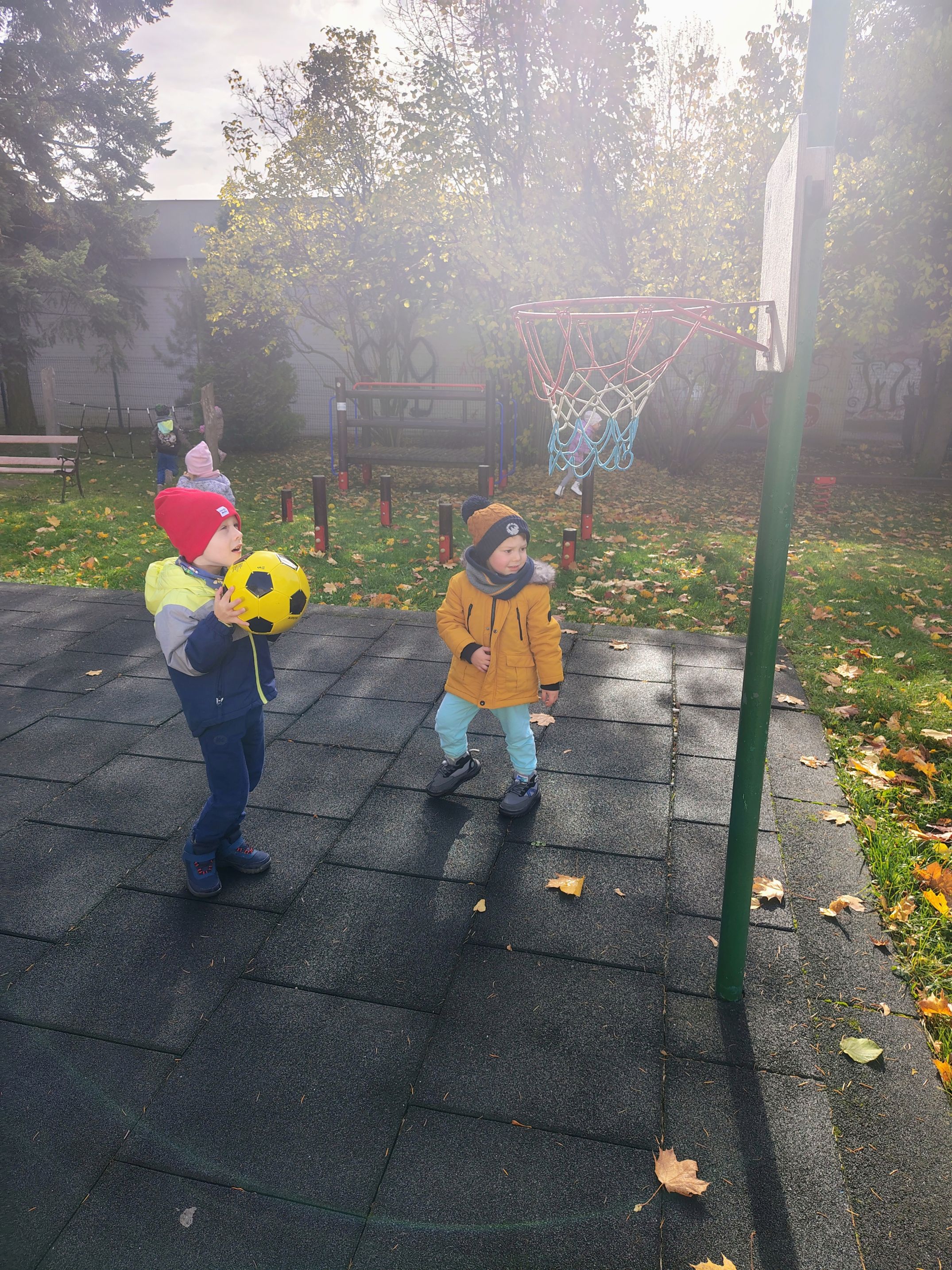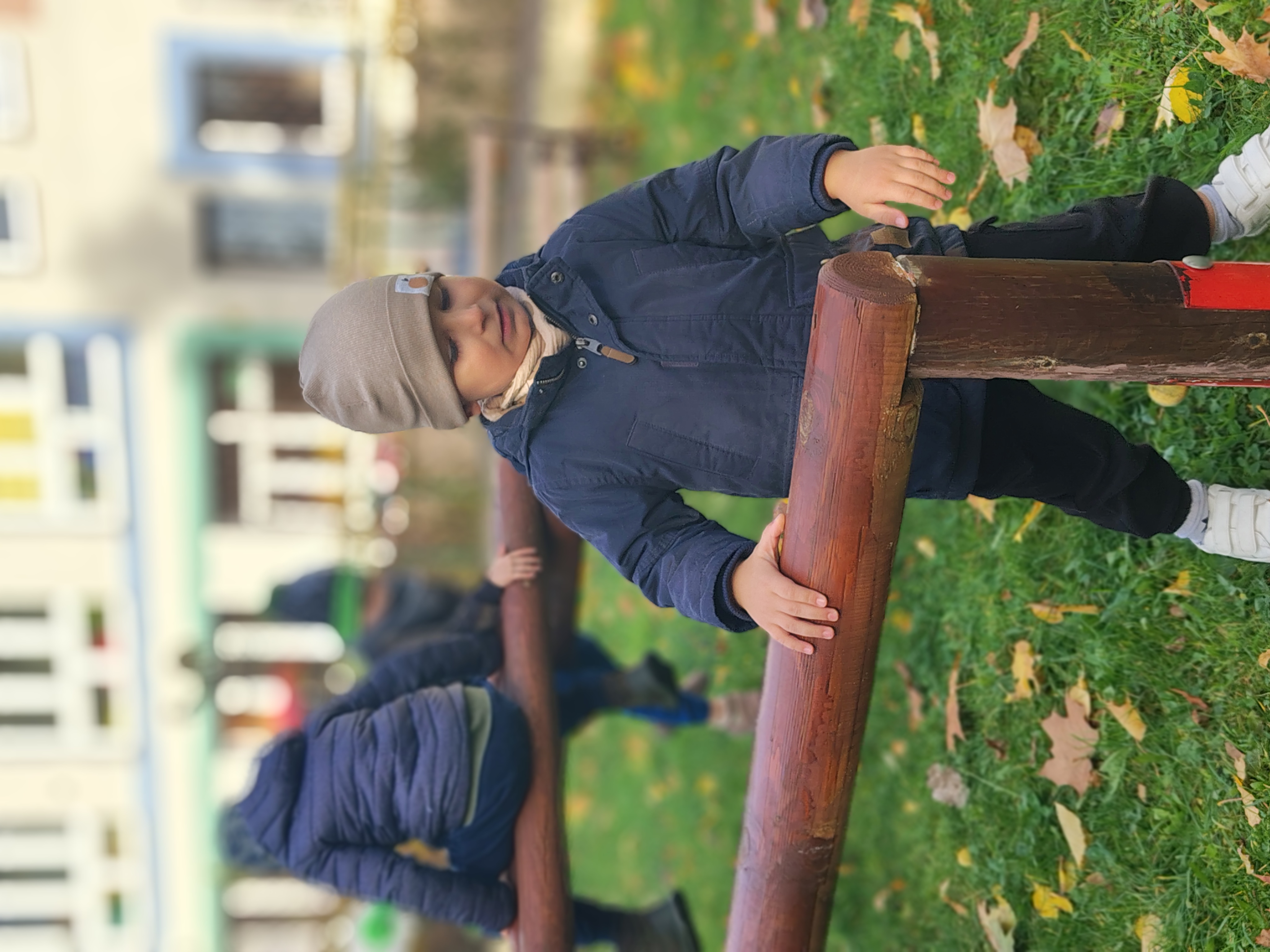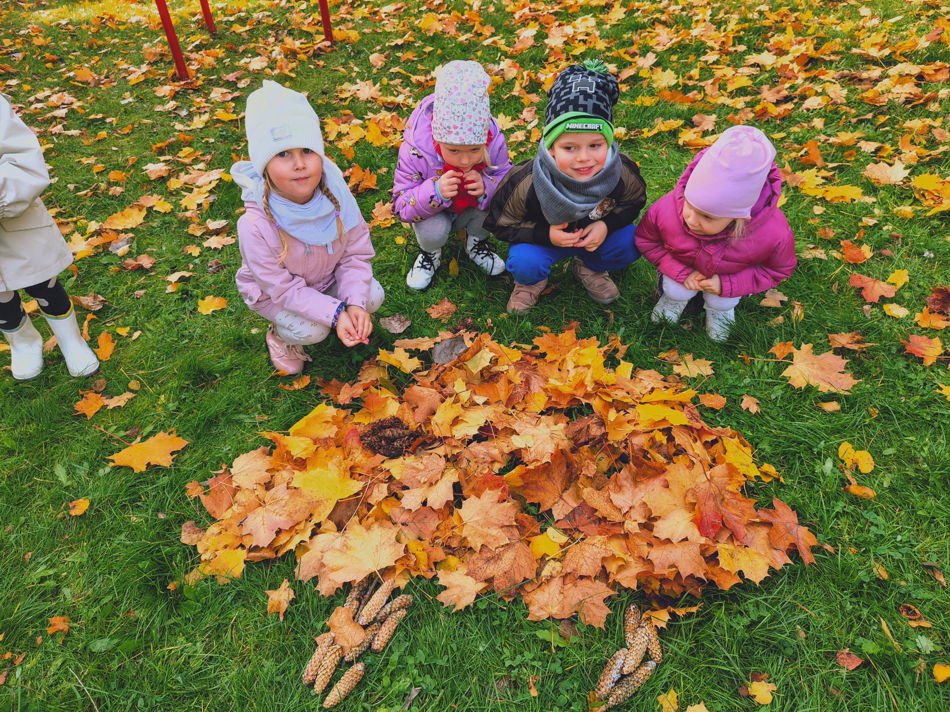 Swobodne zabawy jesienne w ogródku przedszkolnym.