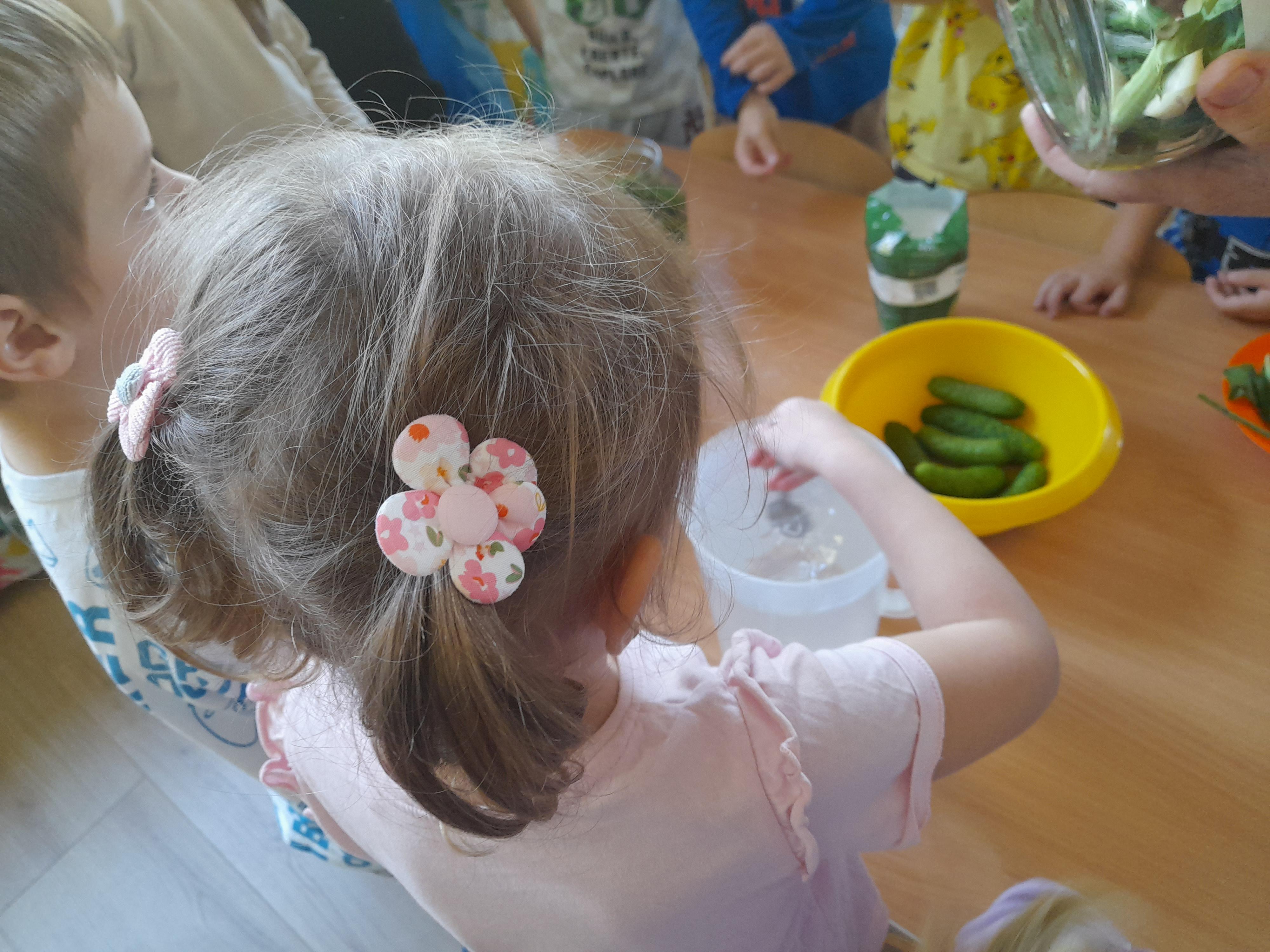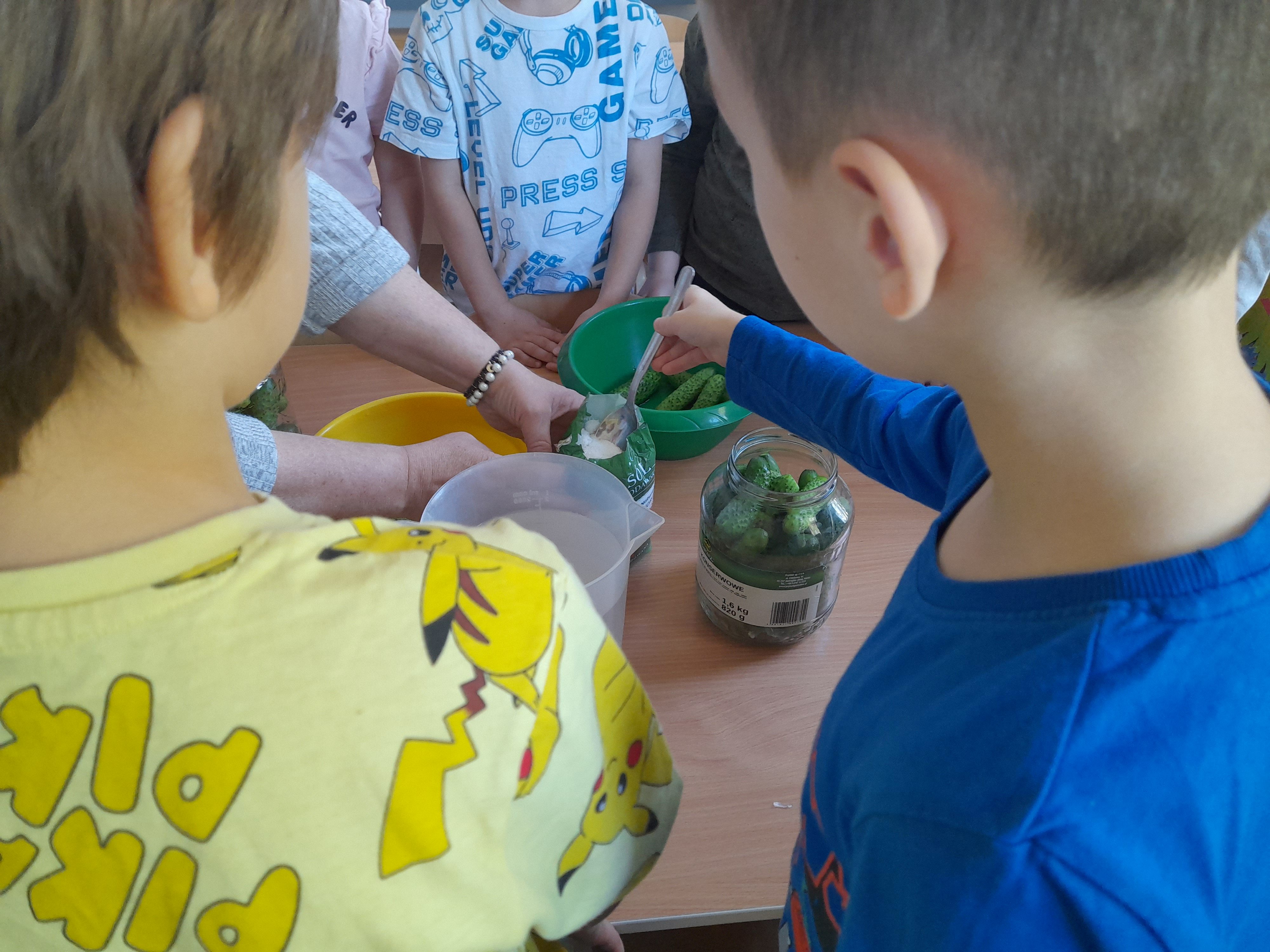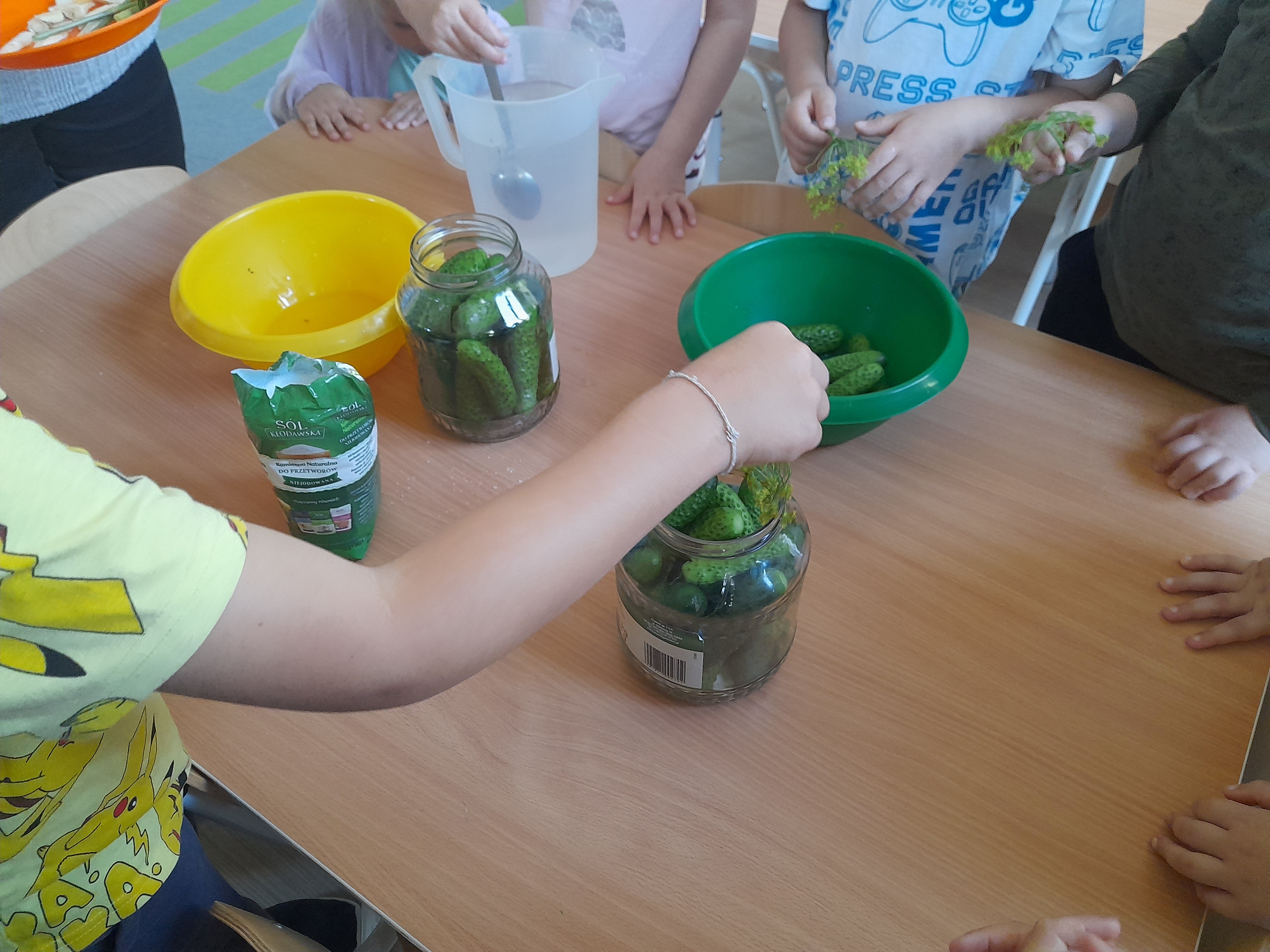 Przedszkolaki z grupy 5 ukisiły swoje ogórki. Dzieci wkładały ogórki do słoików oraz dodawały wszystkie potrzebne składniki. Zadanie to sprawiło im mnóstwo radości oraz satysfakcji.