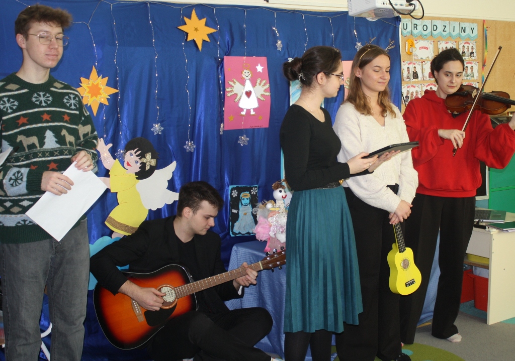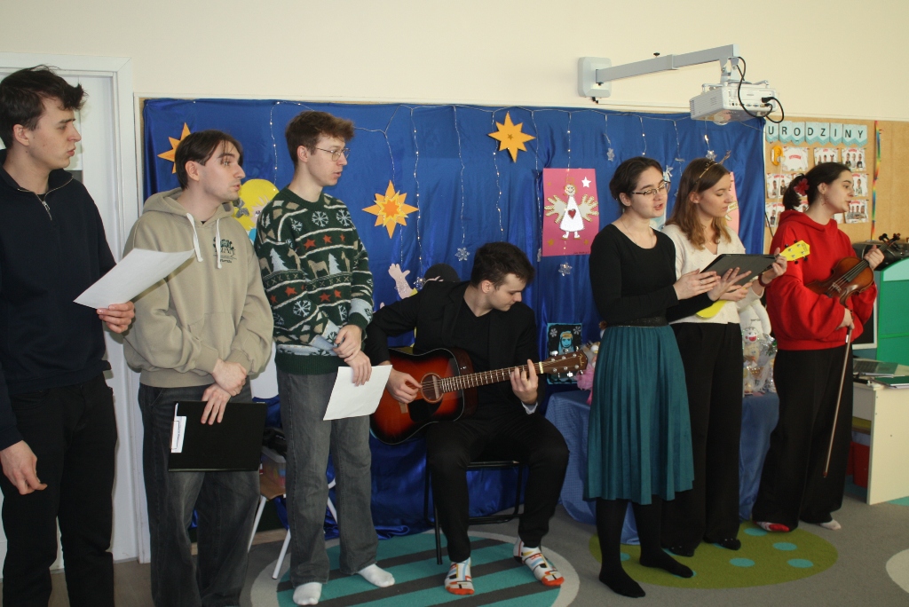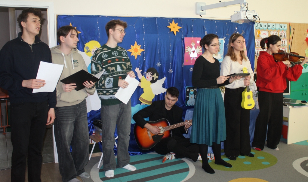 W naszym przedszkolu zapanowała wyjątkowo świąteczna atmosfera. Odbyło się wspólne kolędowanie ze studentami, którzy wraz z dziećmi śpiewali najpiękniejsze kolędy i pastorałki.