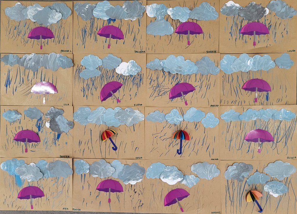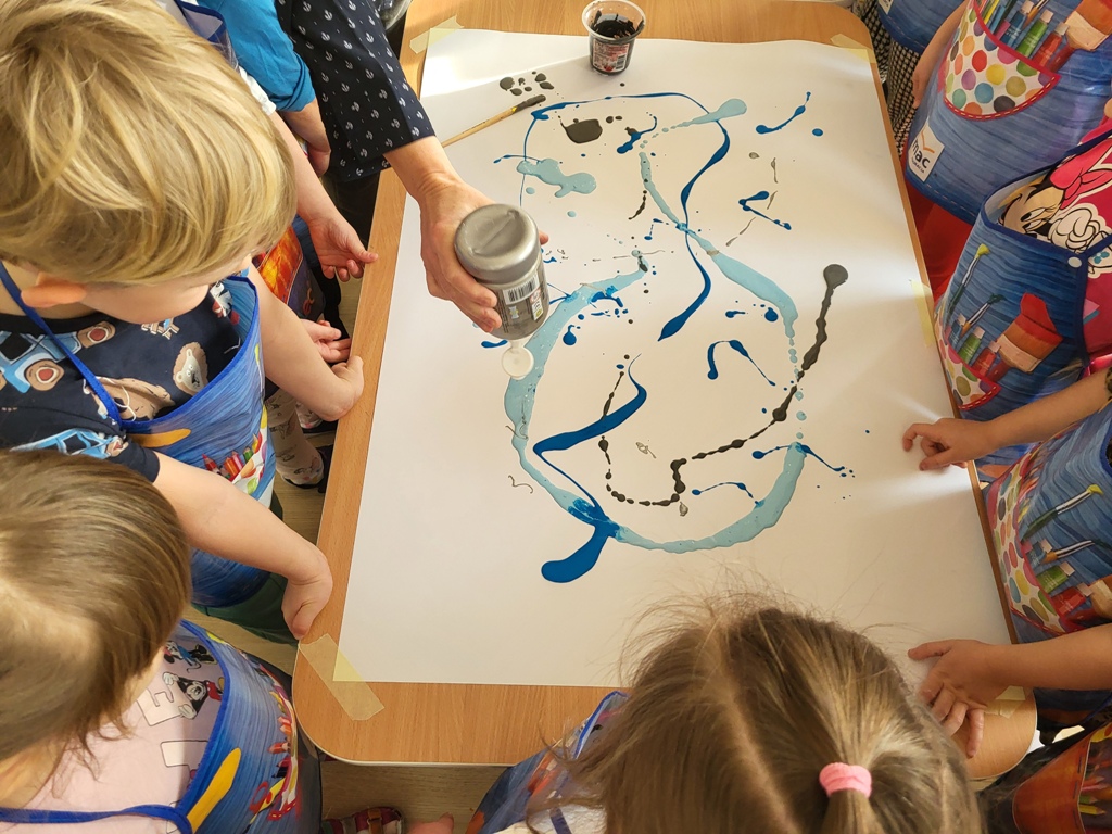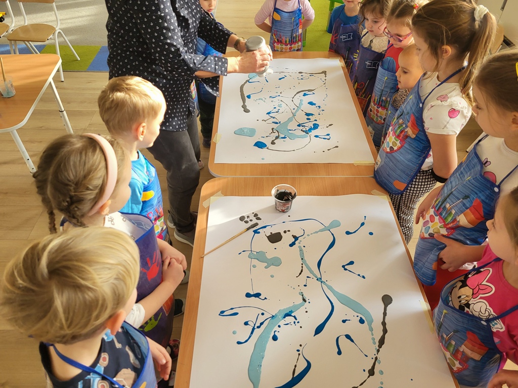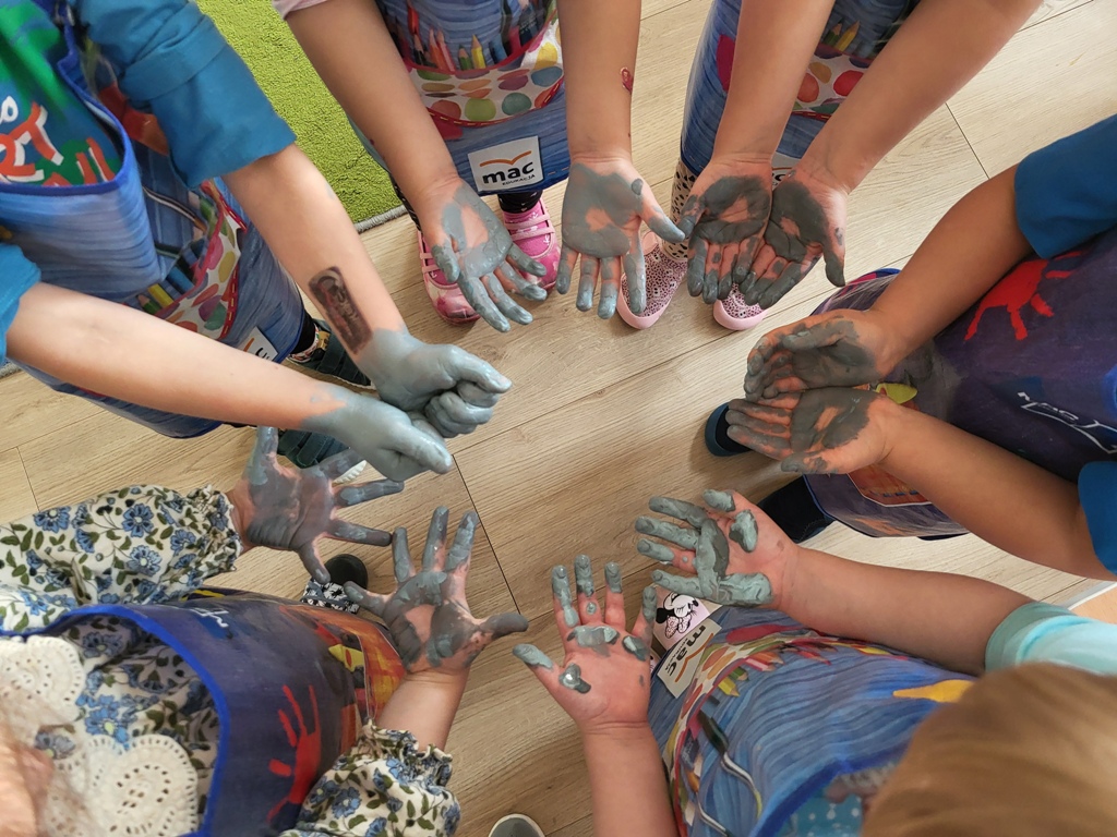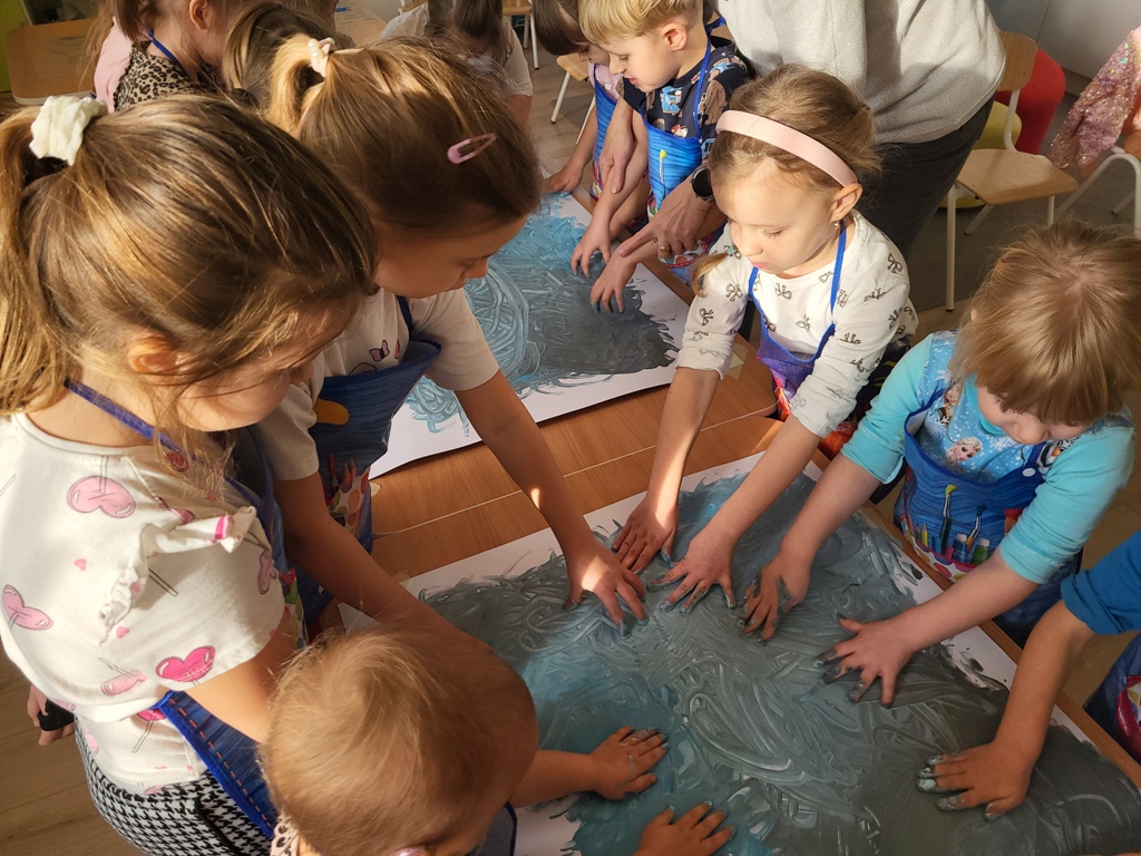 Nasze dłonie, kredki i farby wyczarowują obraz do muzyki.