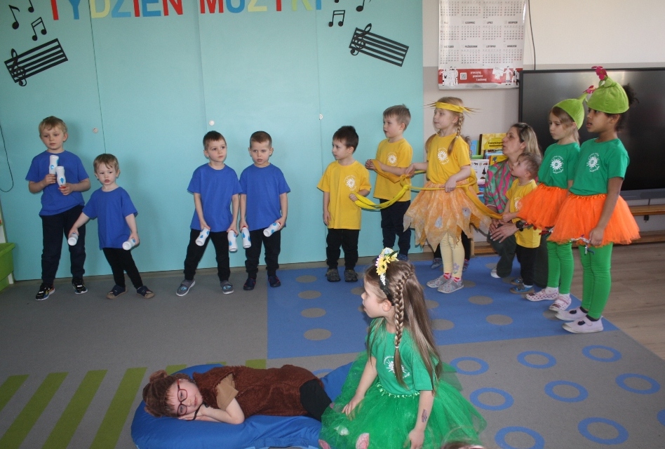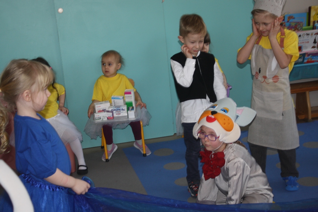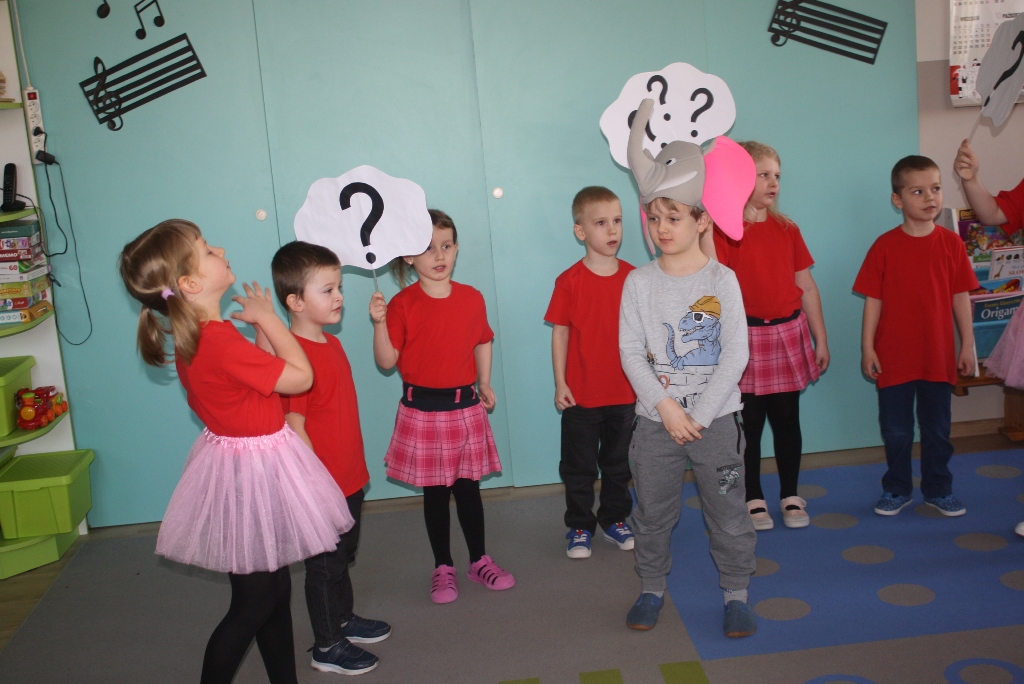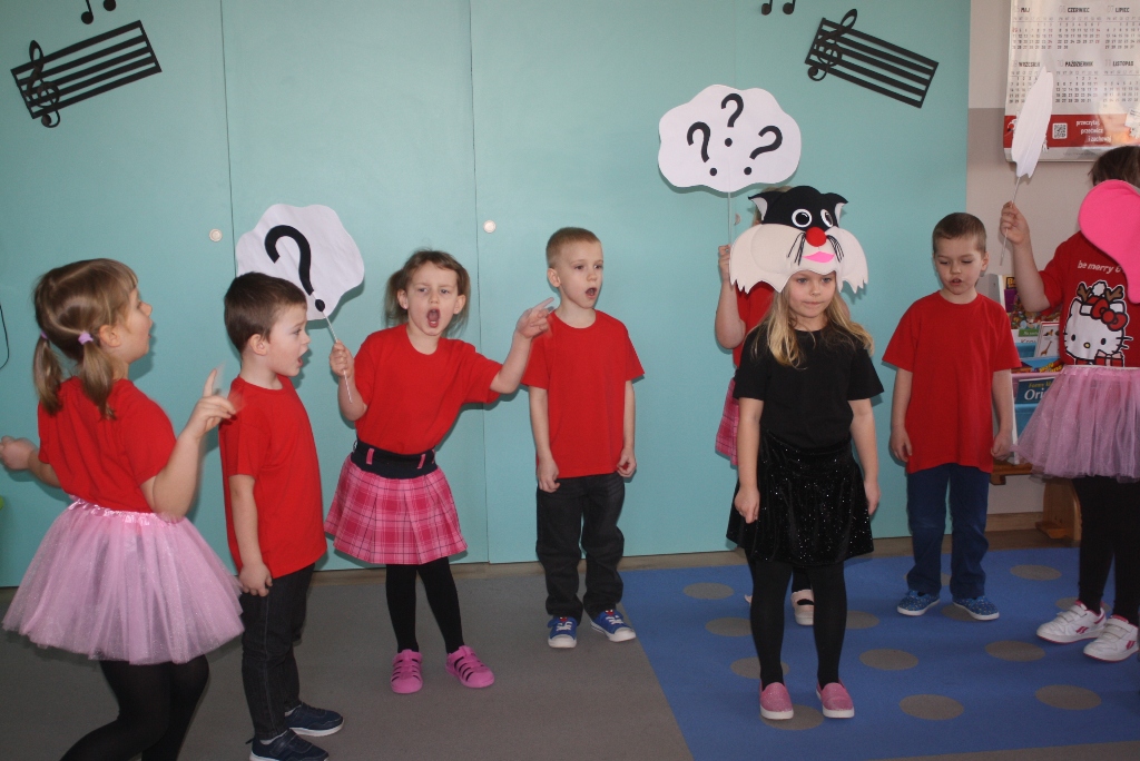 Każdy z nas lubi śpiewać piosenki, ale nie każdy potrafi je zinterpretować. Nasze przedszkolaki przepięknie pokazały nam przygotowane przez siebie muzyczne opowieści. Oprócz śpiewu, dzieci stały się prawdziwymi aktorami, którzy bezbłędnie wcieliły się w przydzielone im role. Poczuliśmy się jak na teatralnym spektaklu.