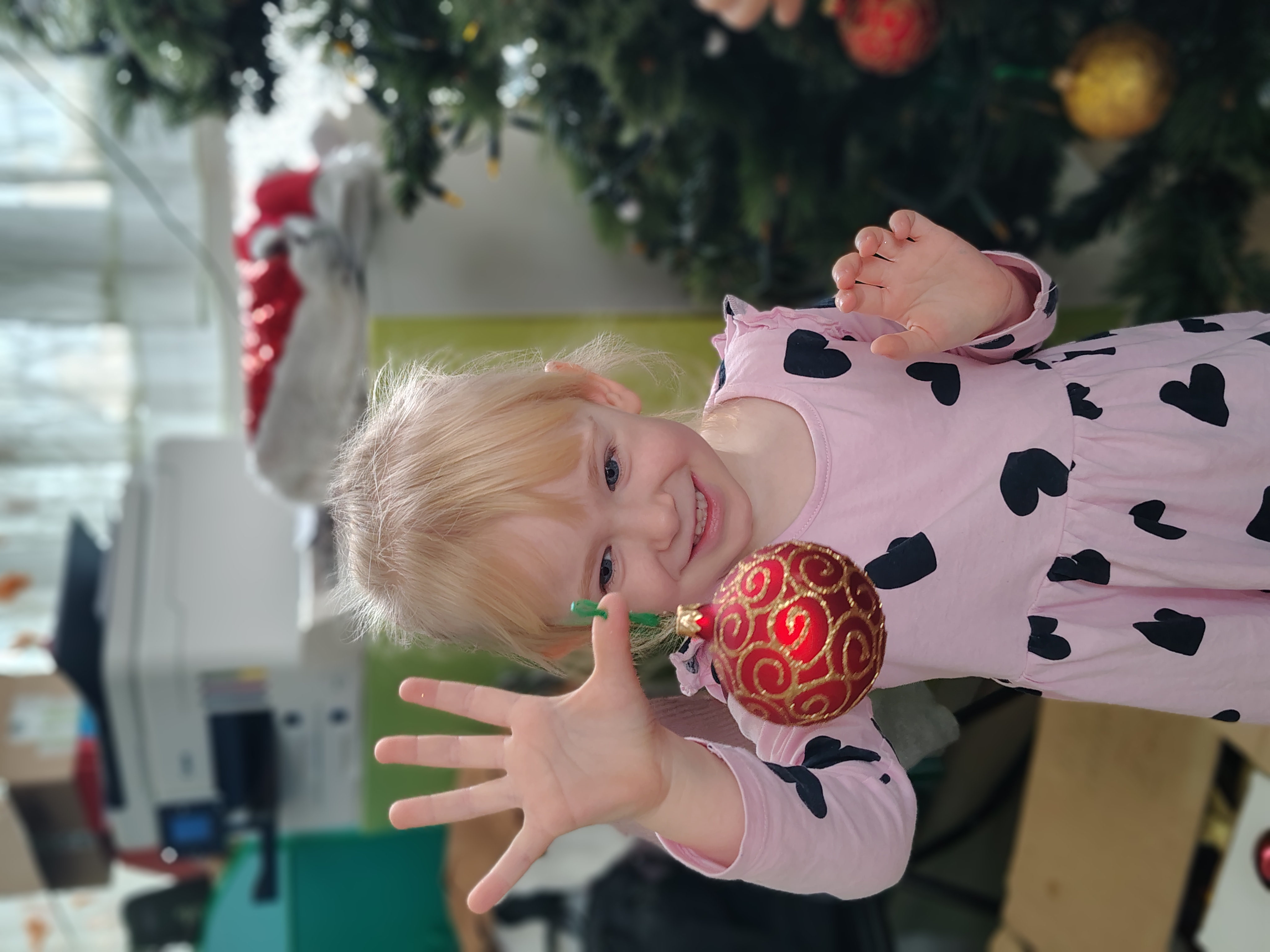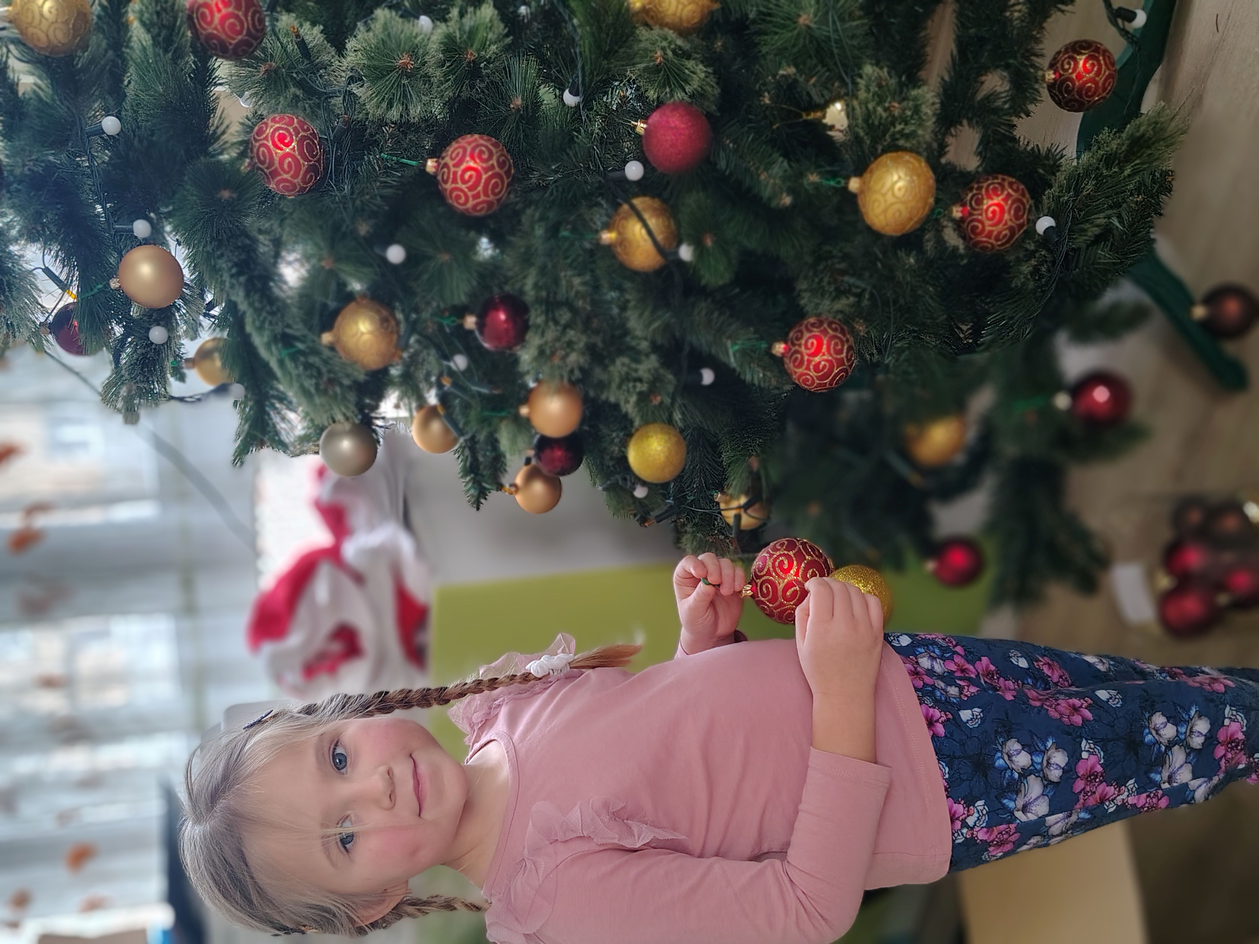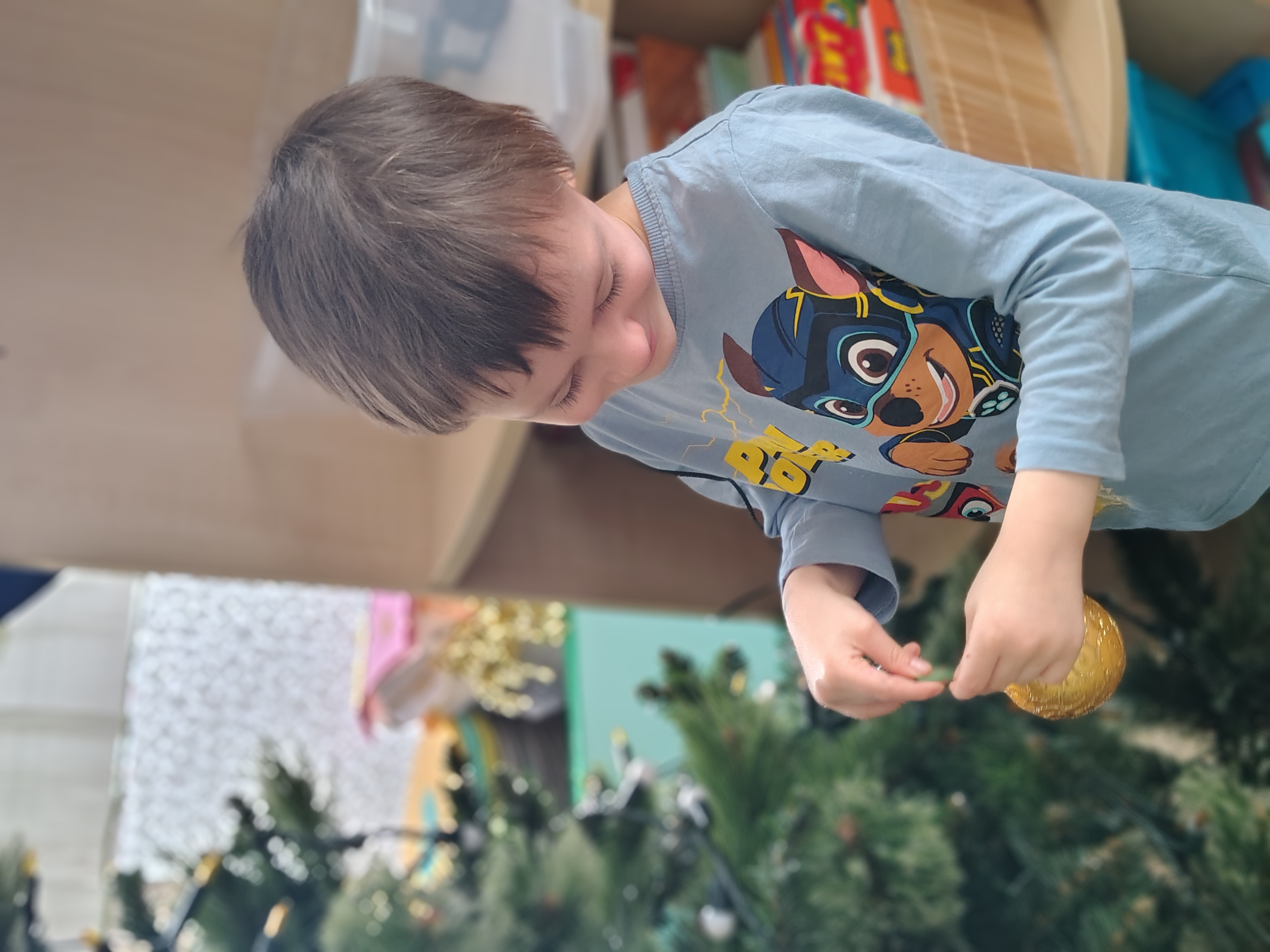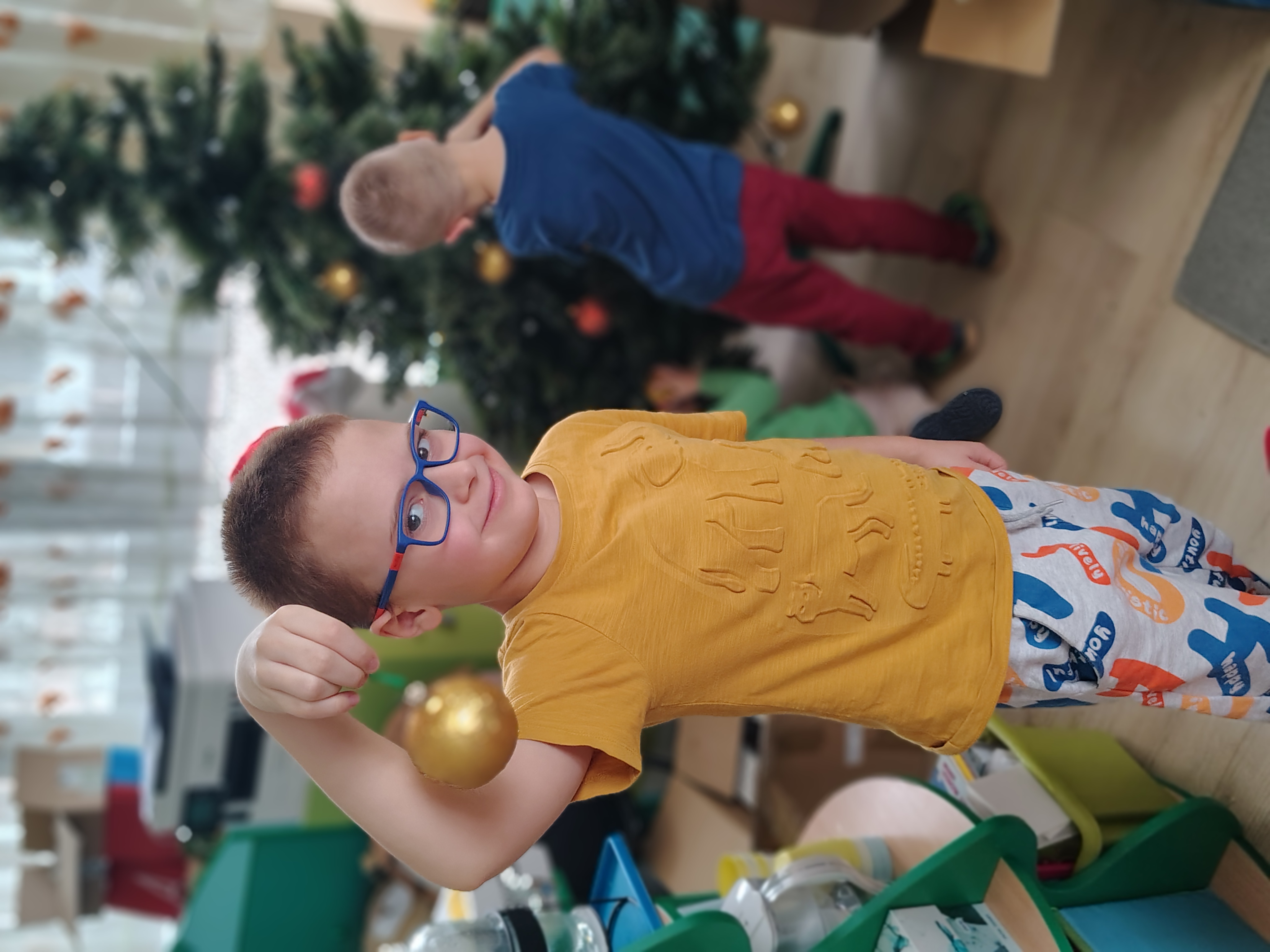 Dzieci powoli przygotowują się do Świąt Bożego Narodzenia. Przedszkolaki napisały list do Świętego Mikołaja, wycinając prezenty, które chciałyby otrzymać. Gotowe listy trafiły do magicznej skrzynki, którą 6 grudnia zabrał sam Mikołaj. Nie zabrakło także wspólnego strojenia choinki — dzieci z zaangażowaniem udekorowały ją pięknymi bombkami, wprowadzając wszystkich w wyjątkowy, świąteczny nastrój.