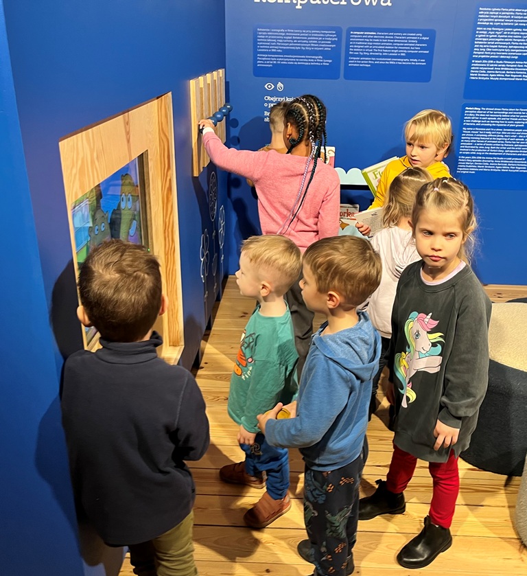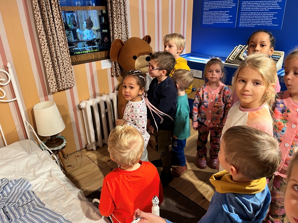 Dzieci brały udział w wycieczce do Muzeum Kinematografii w Łodzi, uczestniczyły w warsztatach "Rolka Bolka i Lolka". Zwiedzając sale muzeum poznały historię powstawania filmów i bajek dla dzieci, mogły dotknąć maskotek i pobawić się nimi, na koniec w sali kinowej oglądnęły bajki.