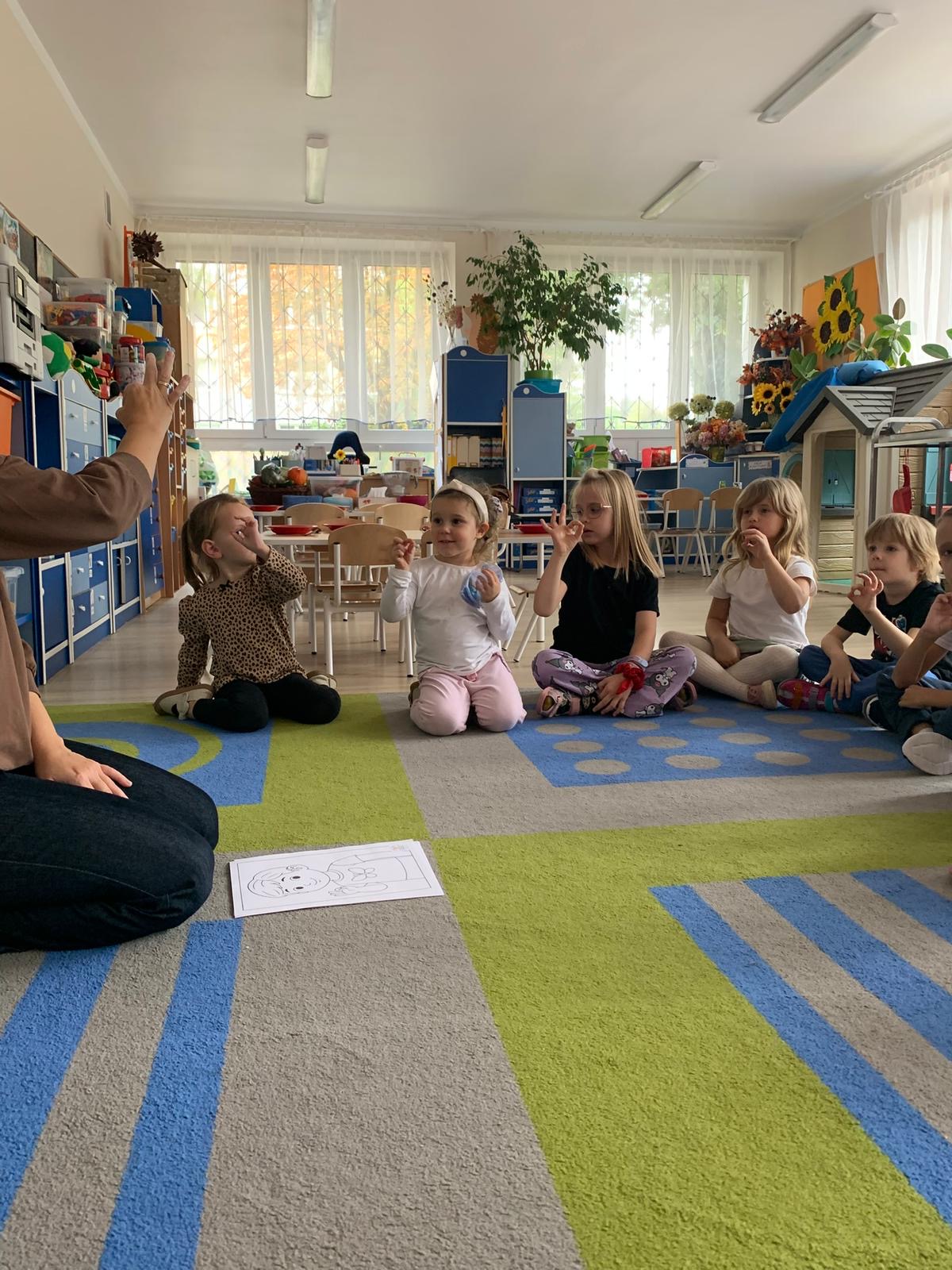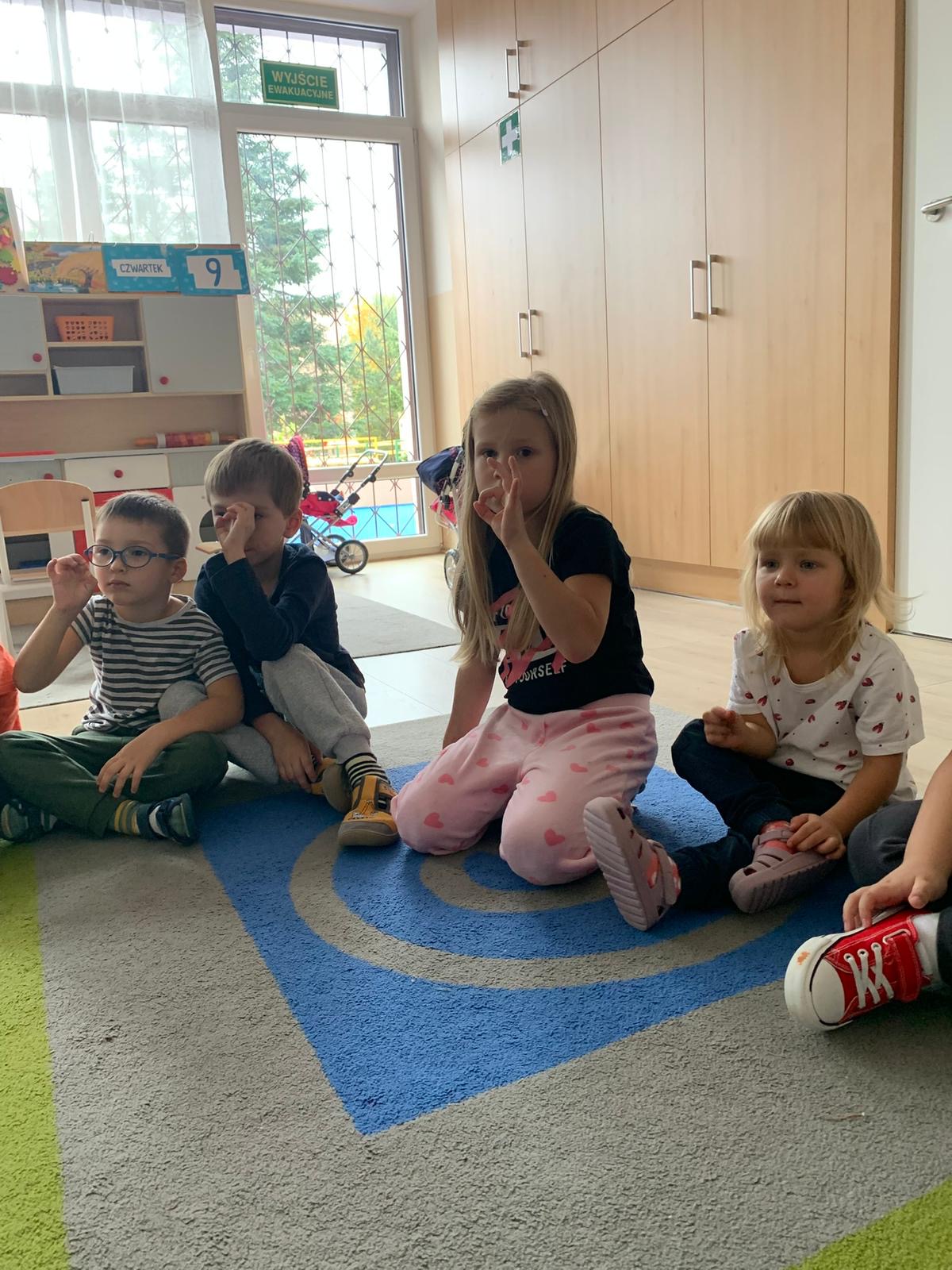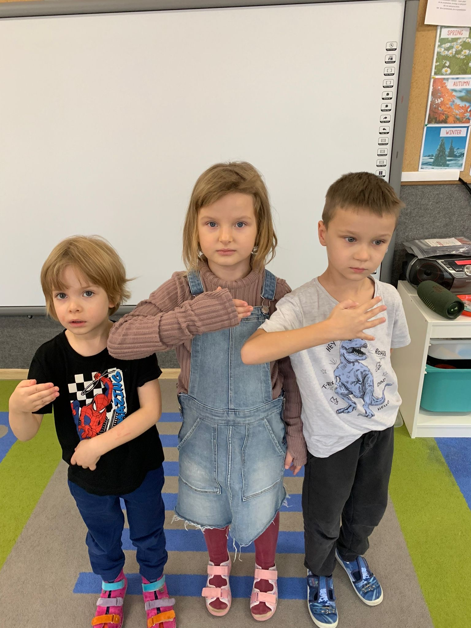 Cała nasza grupa z radością dołączyła do ogólnorozwojowego projektu migowego Migumig. Za nami pierwsze zadanie, które mieliśmy do wykonania w miesiącu październiku. Dzieci nauczyły się pierwszych migowych znaków, udało się nam nauczyć piosenki, którą migamy perfekcyjnie, ale to nie wszystko, nasi rodzice dostali od nas instruktaż jak migać poznane znaki i możemy powiedzieć, że wspaniali z nas nauczyciele. Dodatkowo uczymy się również pierwszych literek. To początek fantastycznej przygody.