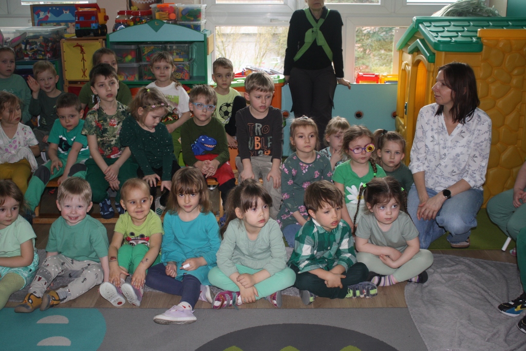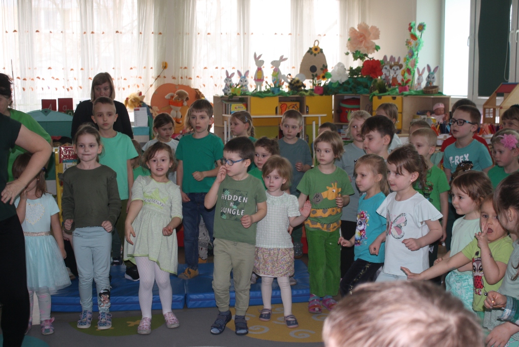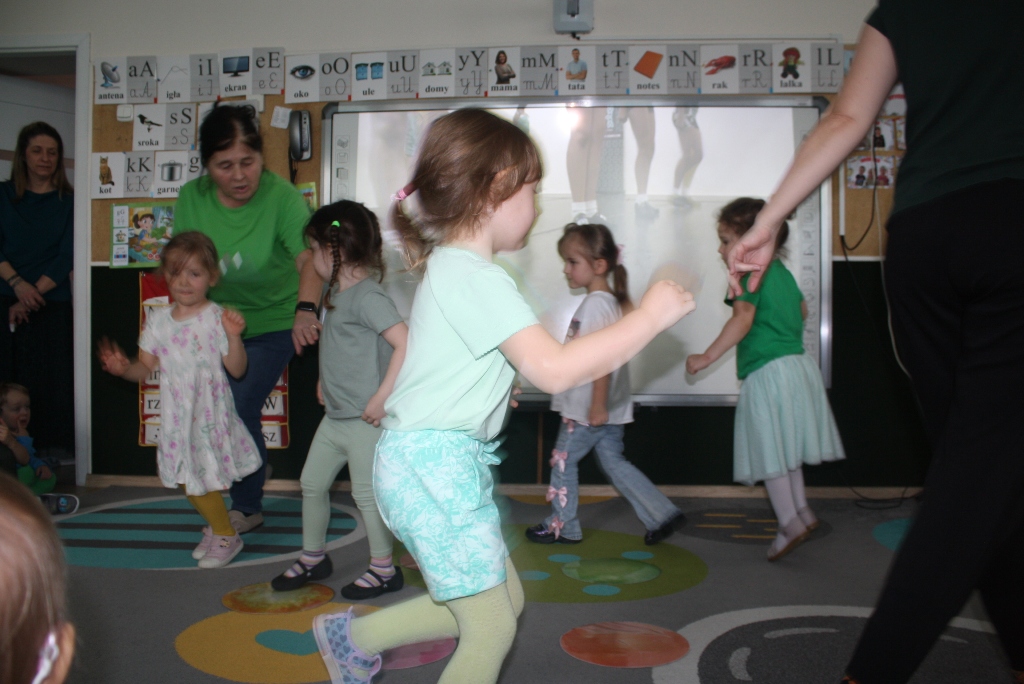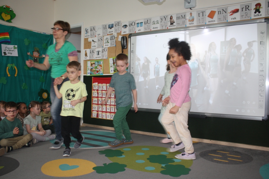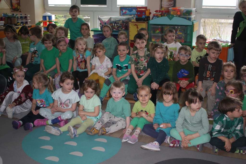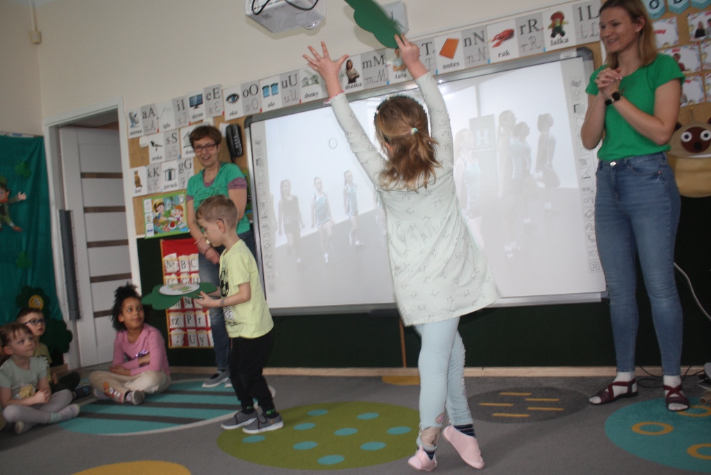 Dzień Św. Patryka w przedszkolu to radosna, zielona impreza celebrująca irlandzką kulturę. Dzieci poznały legendę o św. Patryku, a także dowiedziały się, co czeka na nas po drugiej stronie tęczy. Były tańce, zagadki i konkurencje, w których oczywiście dominował kolor zielony. Każdy znalazł też złotą monetę, która ukryła się w wielkim garncu skrzata Leperchauna.