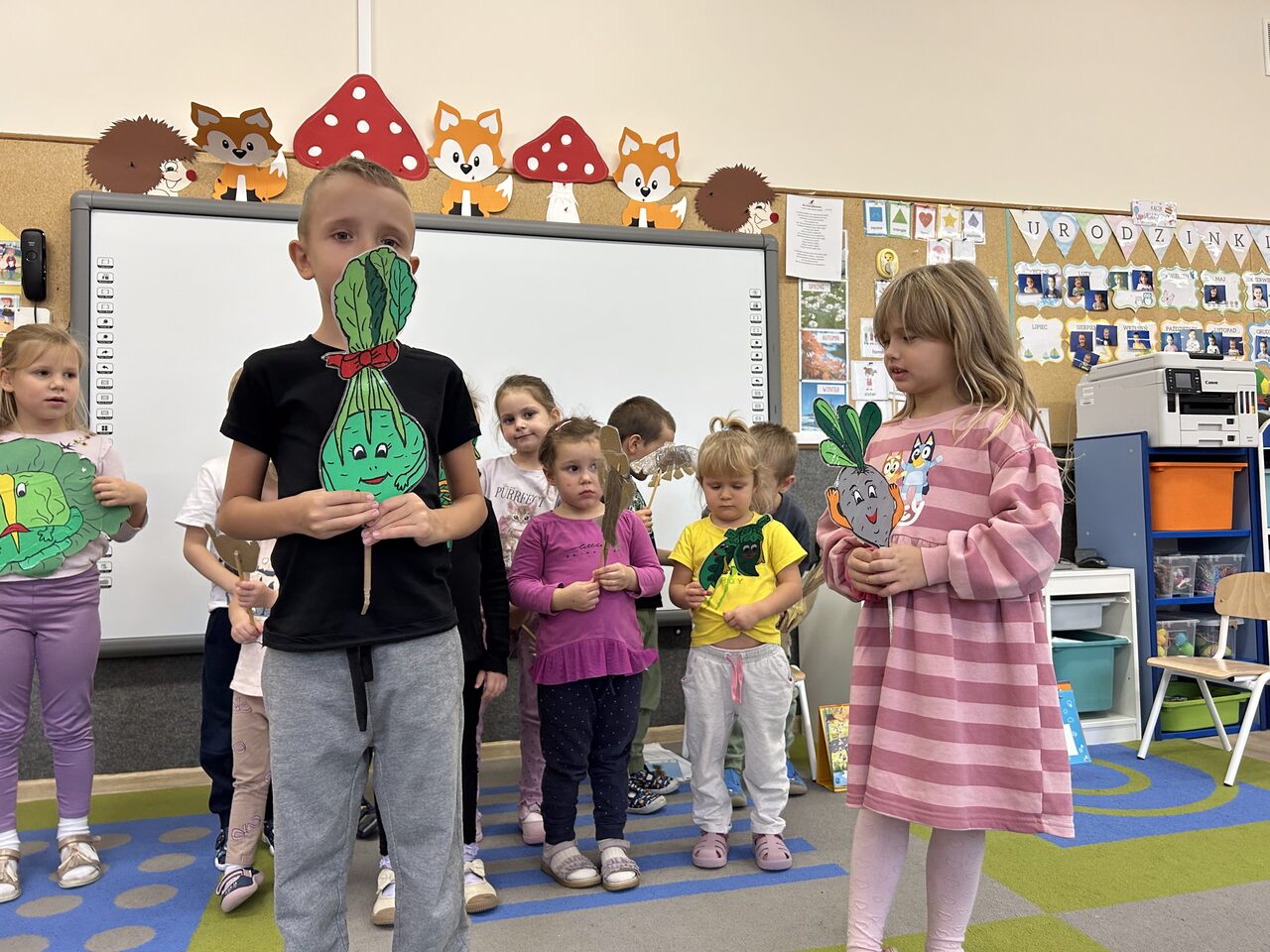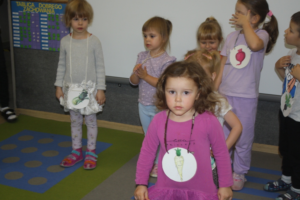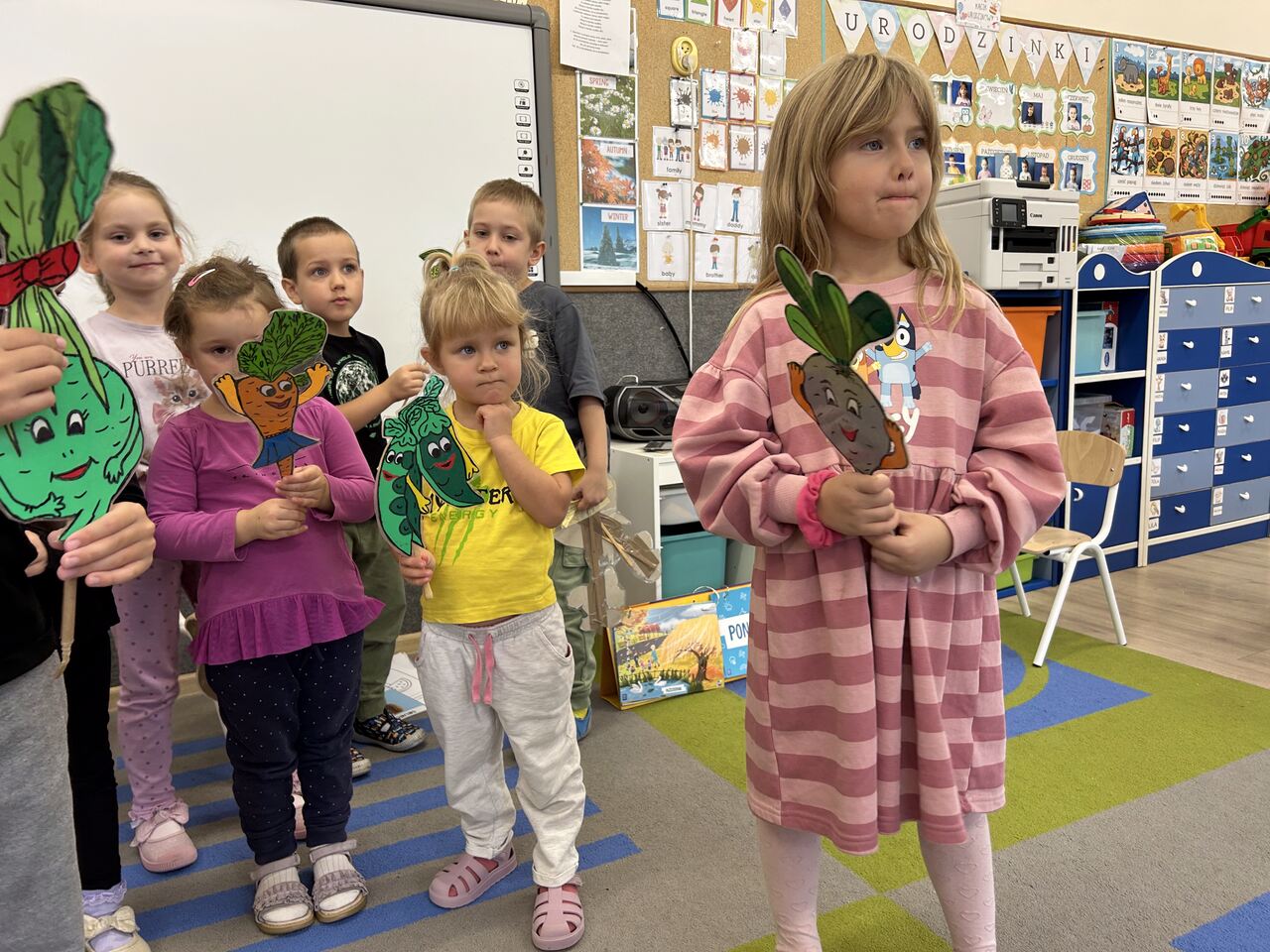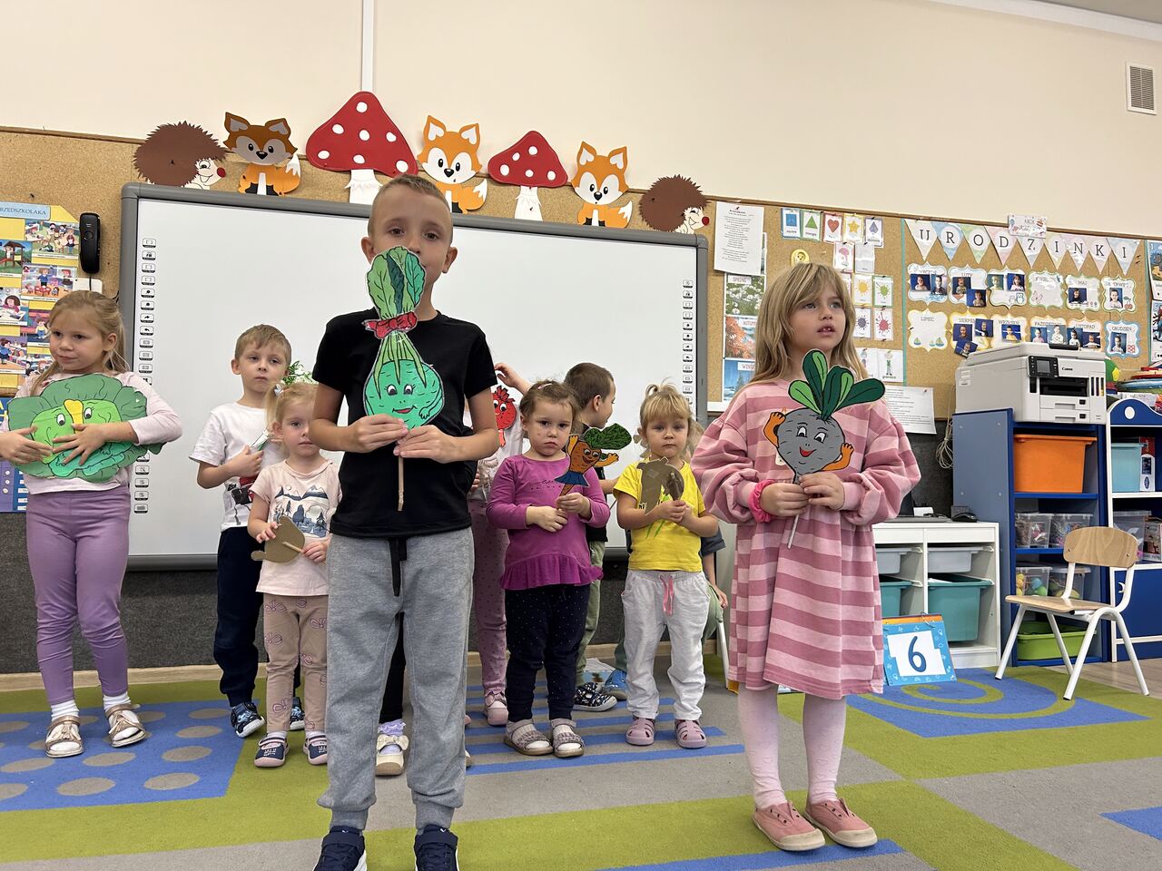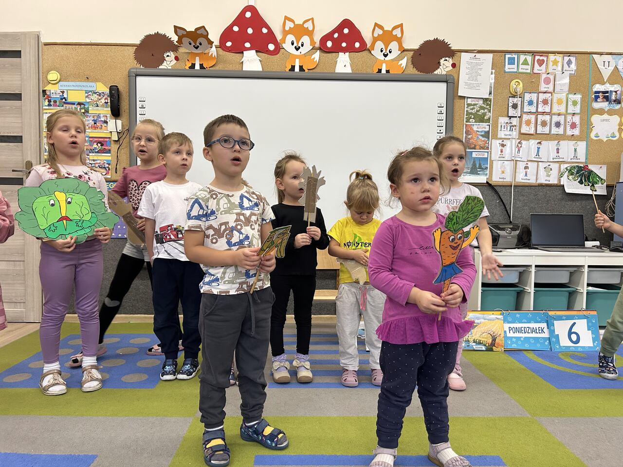 W tym tygodniu dzieci poznały i nazwały warzywa. Wystąpiły w teatrzyku kukiełkowym i rozpoznawały warzywa dotykowo. Poznały wartość pieniądza, bawiły się w sklep. Wykonały marchewkową pracę plastyczną. Tydzień zakończył się inscenizowaną piosenką oraz próbowaniem pysznego, świeżo wyciskanego soku z marchewki i buraka.