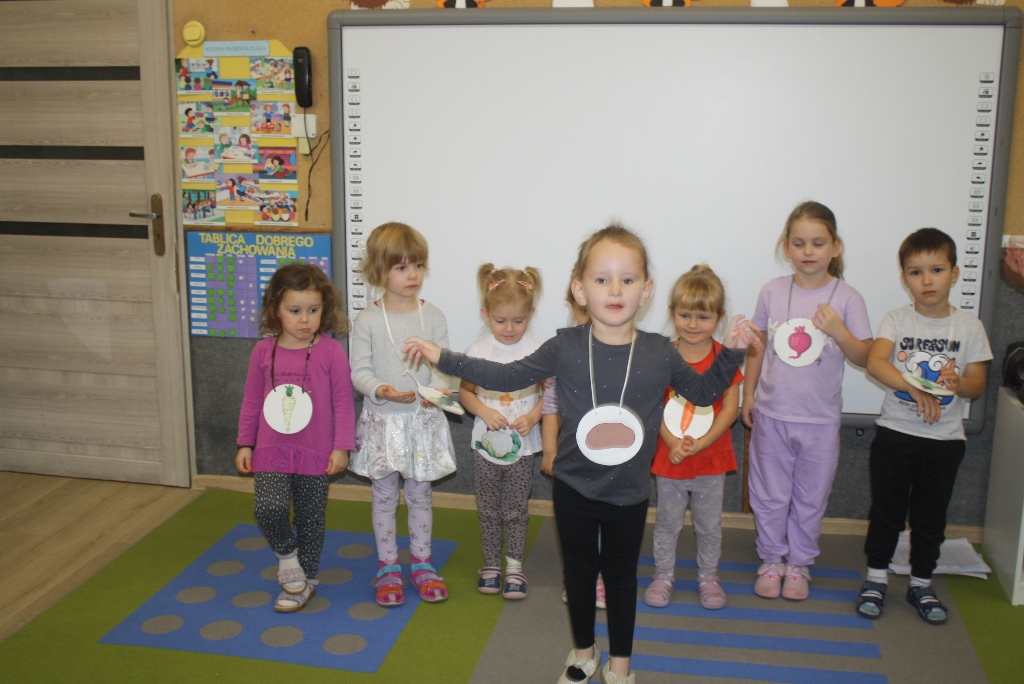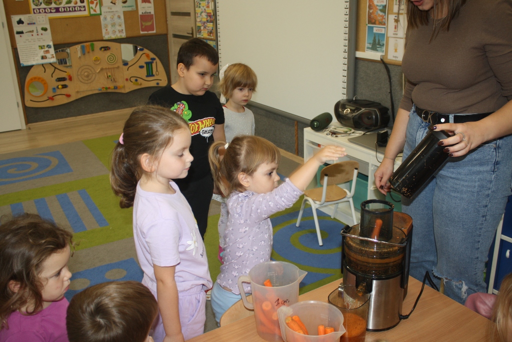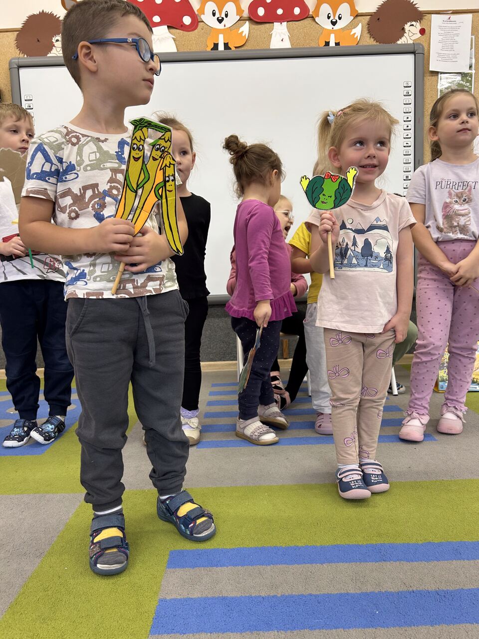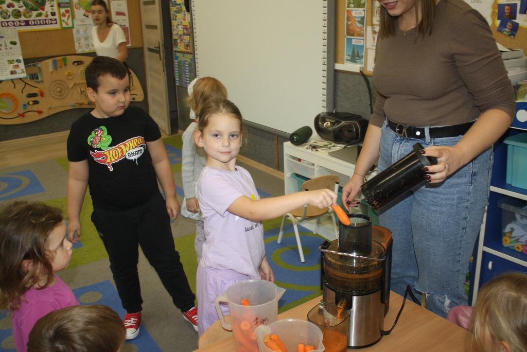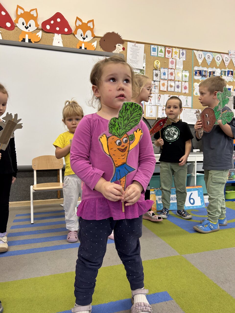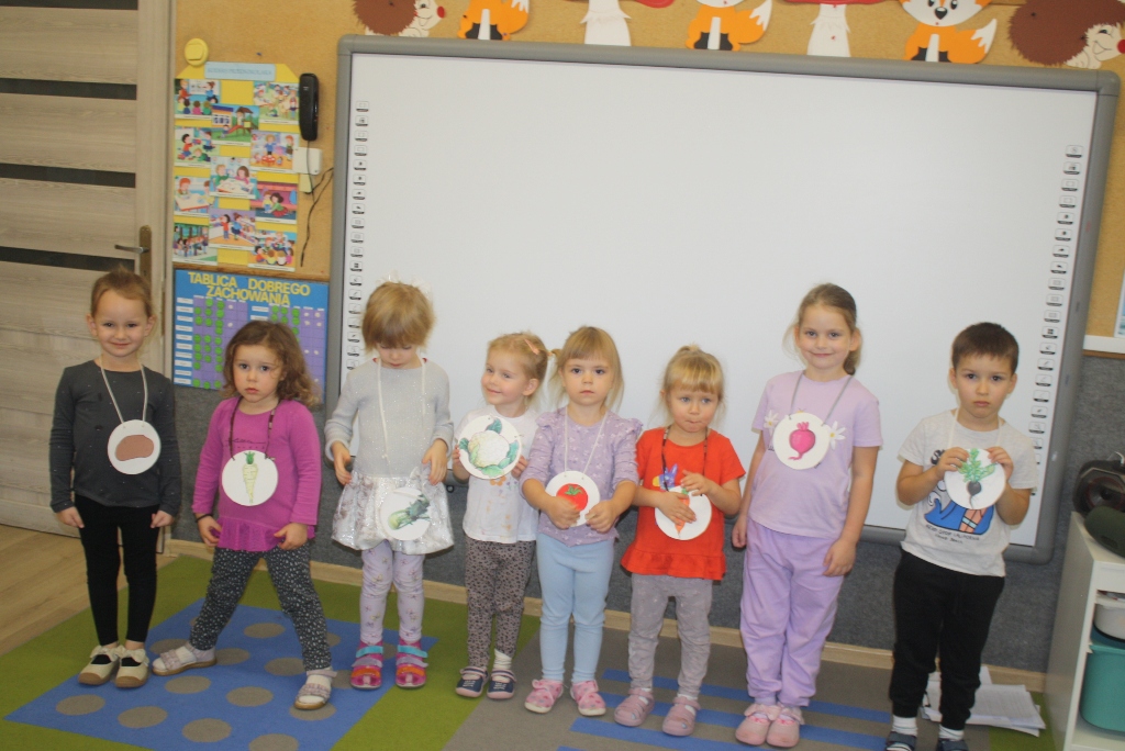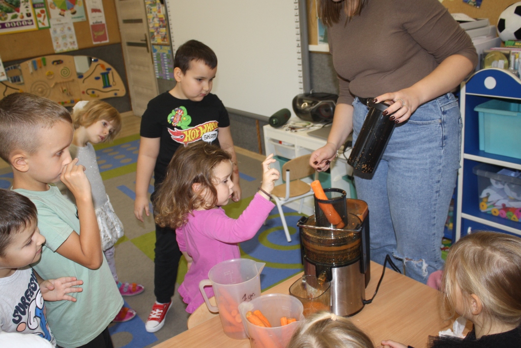 W tym tygodniu dzieci poznały i nazwały warzywa. Wystąpiły w teatrzyku kukiełkowym i rozpoznawały warzywa dotykowo. Poznały wartość pieniądza, bawiły się w sklep. Wykonały marchewkową pracę plastyczną. Tydzień zakończył się inscenizowaną piosenką oraz próbowaniem pysznego, świeżo wyciskanego soku z marchewki i buraka.