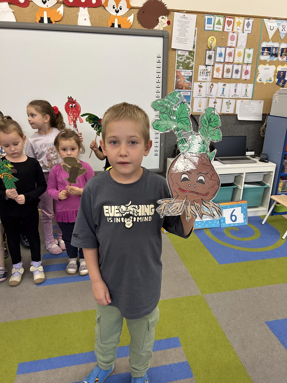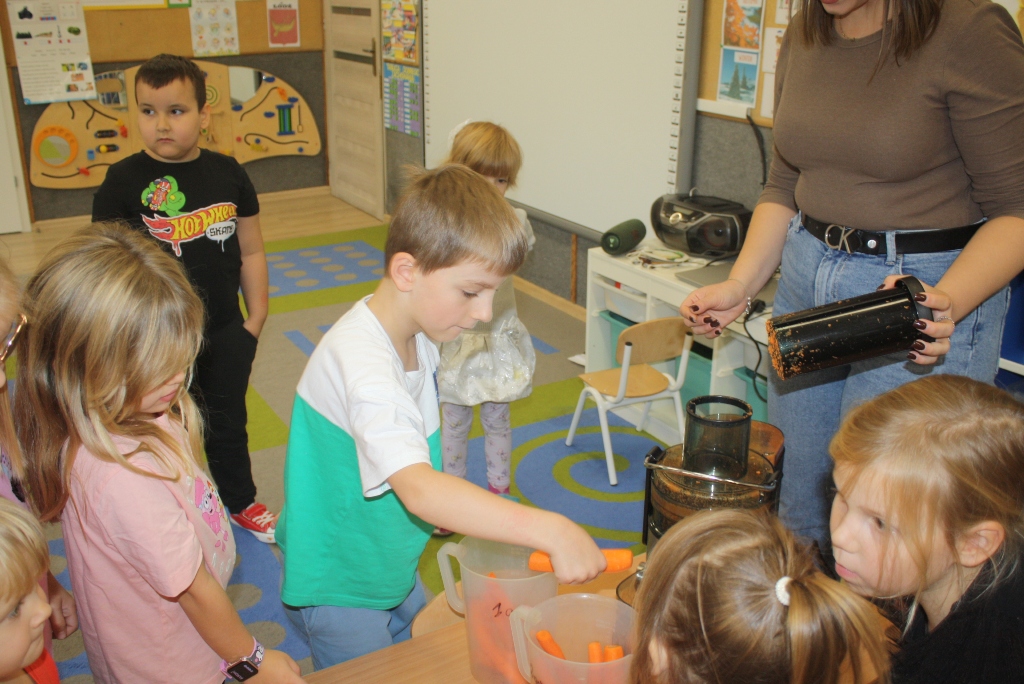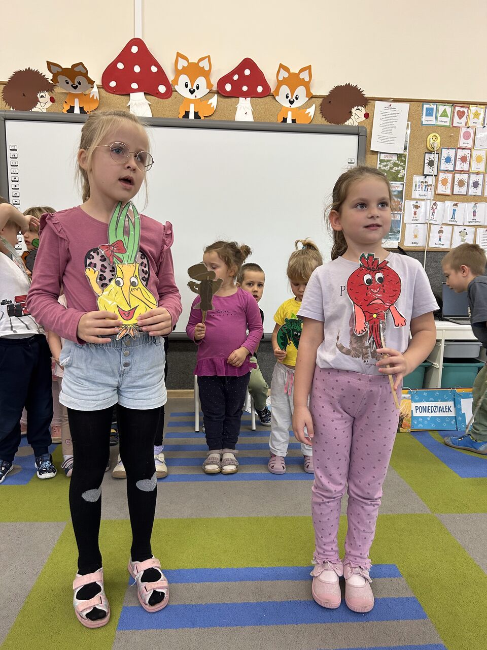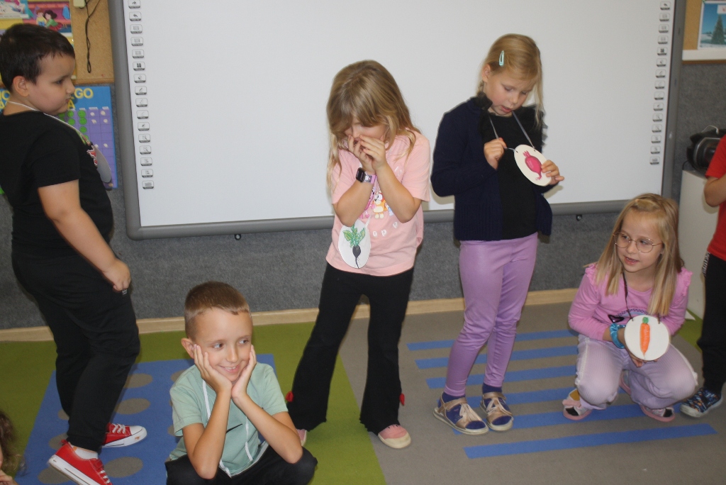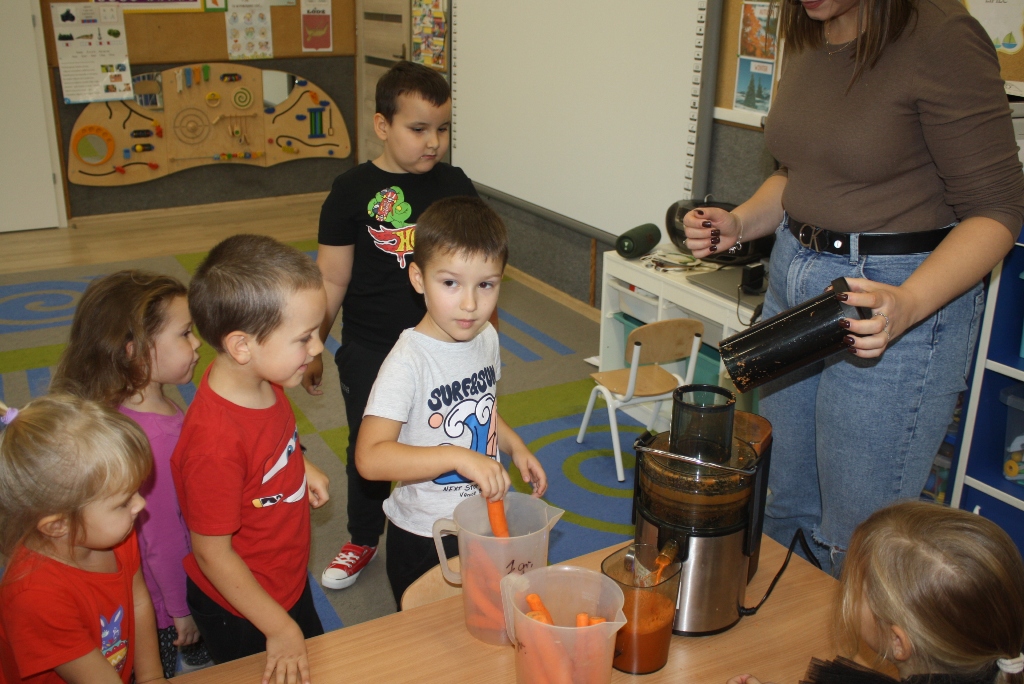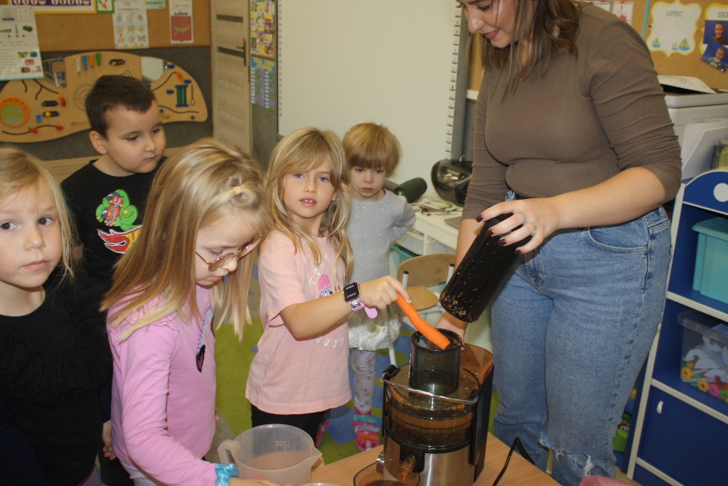 W tym tygodniu dzieci poznały i nazwały warzywa. Wystąpiły w teatrzyku kukiełkowym i rozpoznawały warzywa dotykowo. Poznały wartość pieniądza, bawiły się w sklep. Wykonały marchewkową pracę plastyczną. Tydzień zakończył się inscenizowaną piosenką oraz próbowaniem pysznego, świeżo wyciskanego soku z marchewki i buraka.