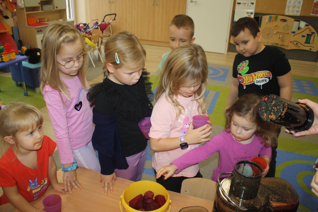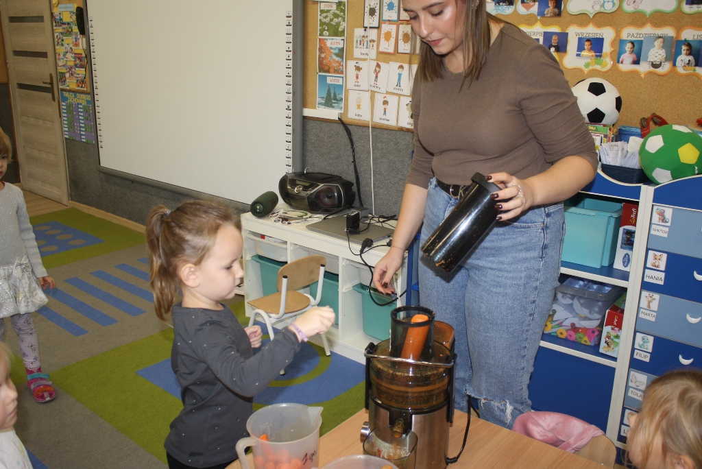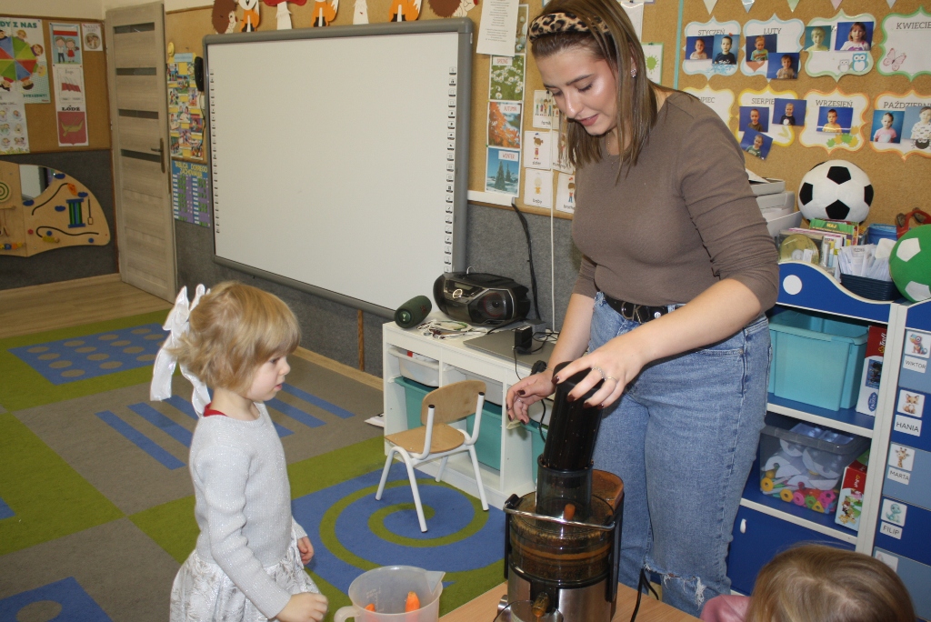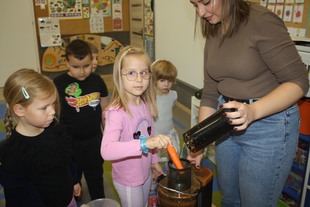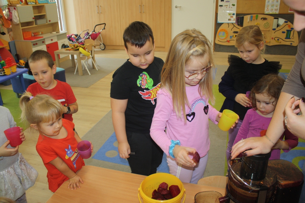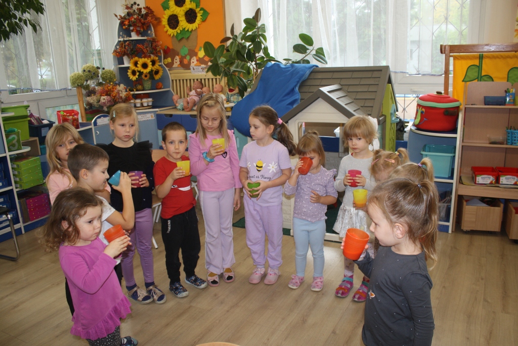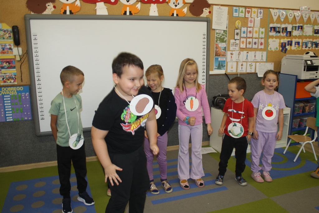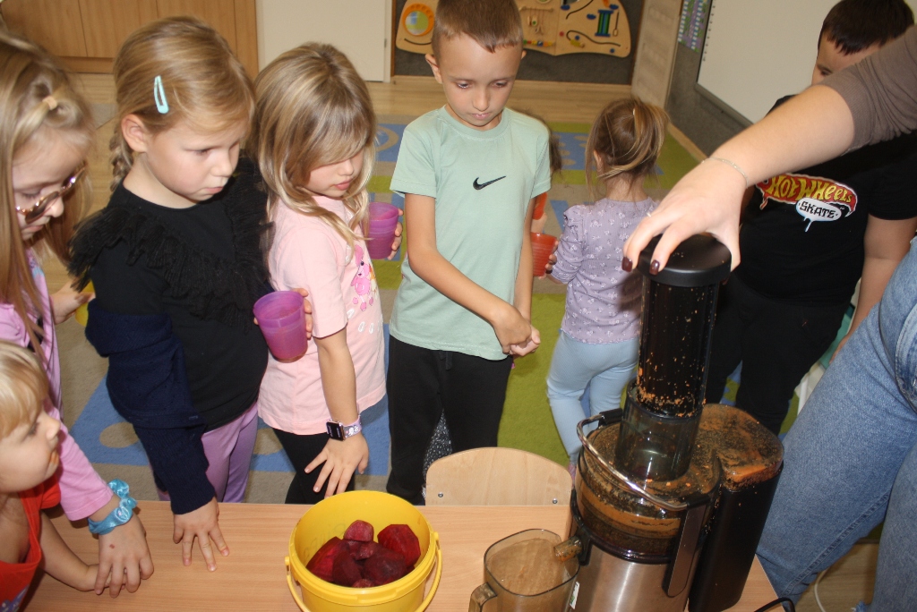 W tym tygodniu dzieci poznały i nazwały warzywa. Wystąpiły w teatrzyku kukiełkowym i rozpoznawały warzywa dotykowo. Poznały wartość pieniądza, bawiły się w sklep. Wykonały marchewkową pracę plastyczną. Tydzień zakończył się inscenizowaną piosenką oraz próbowaniem pysznego, świeżo wyciskanego soku z marchewki i buraka.