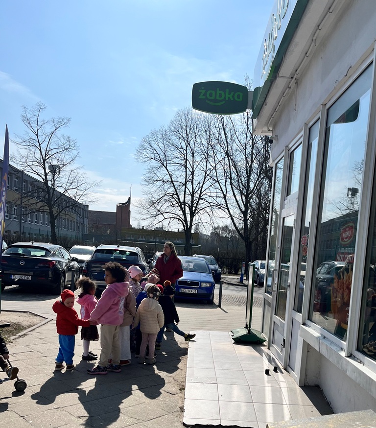 Dzieci wyruszyły na zakupy, poznając sklepy w najbliższej okolicy oraz dowiedzą się, jakie produkty można w nich kupić. To doskonały czas na obserwację otoczenia, klasyfikację produktów (spożywcze, odzieżowe, zabawki) oraz małe podstawy ekonomii - pieniądze.