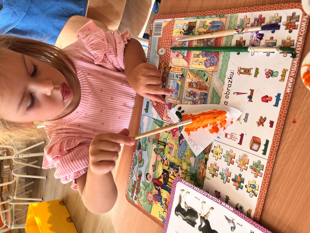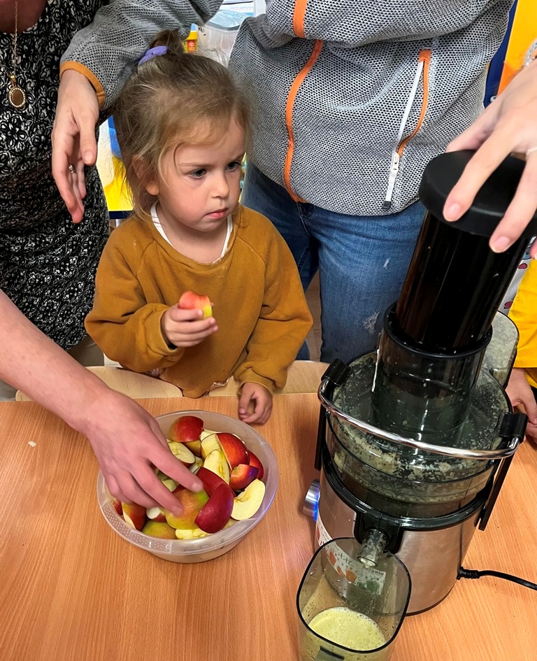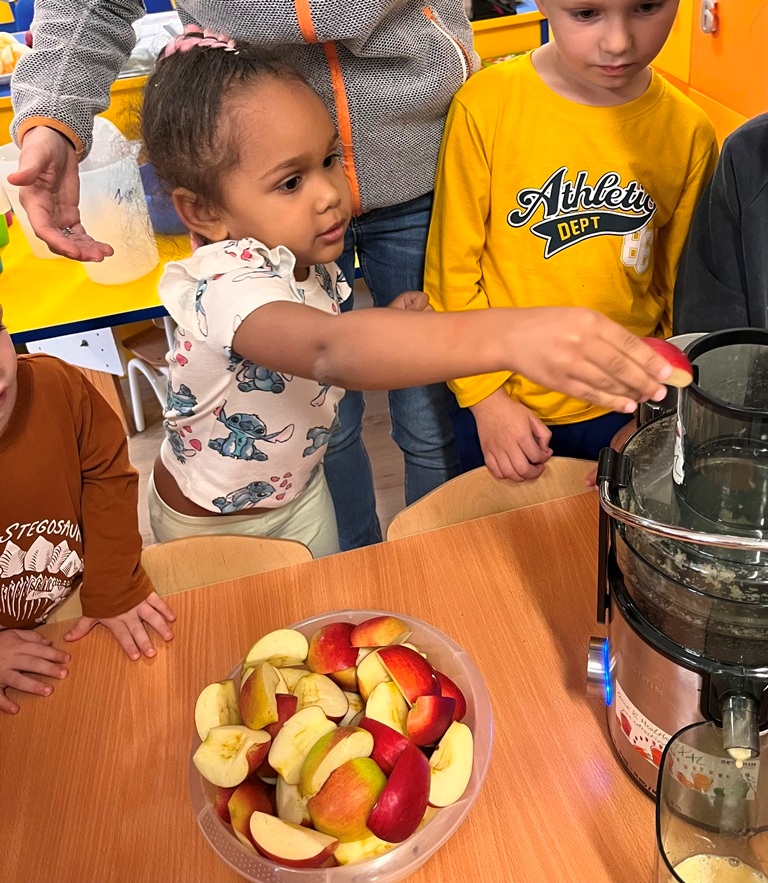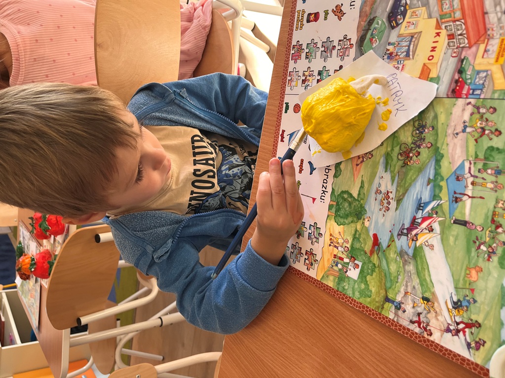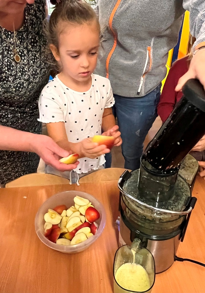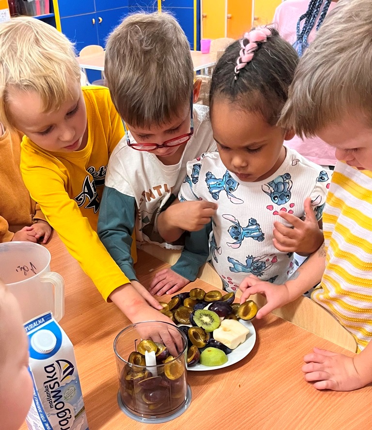 Jesień pełna warzyw i owoców zawitała do nas. Dzieci podczas całego tygodnia poznawały owoce wszystkimi zmysłami- kosztowały, dotykały, piły sok, lepiły, rysowały i zgadywały. Wybrały się na wycieczkę do sklepu i wykonały z masy solnej warzywa, które potem pomalowały.