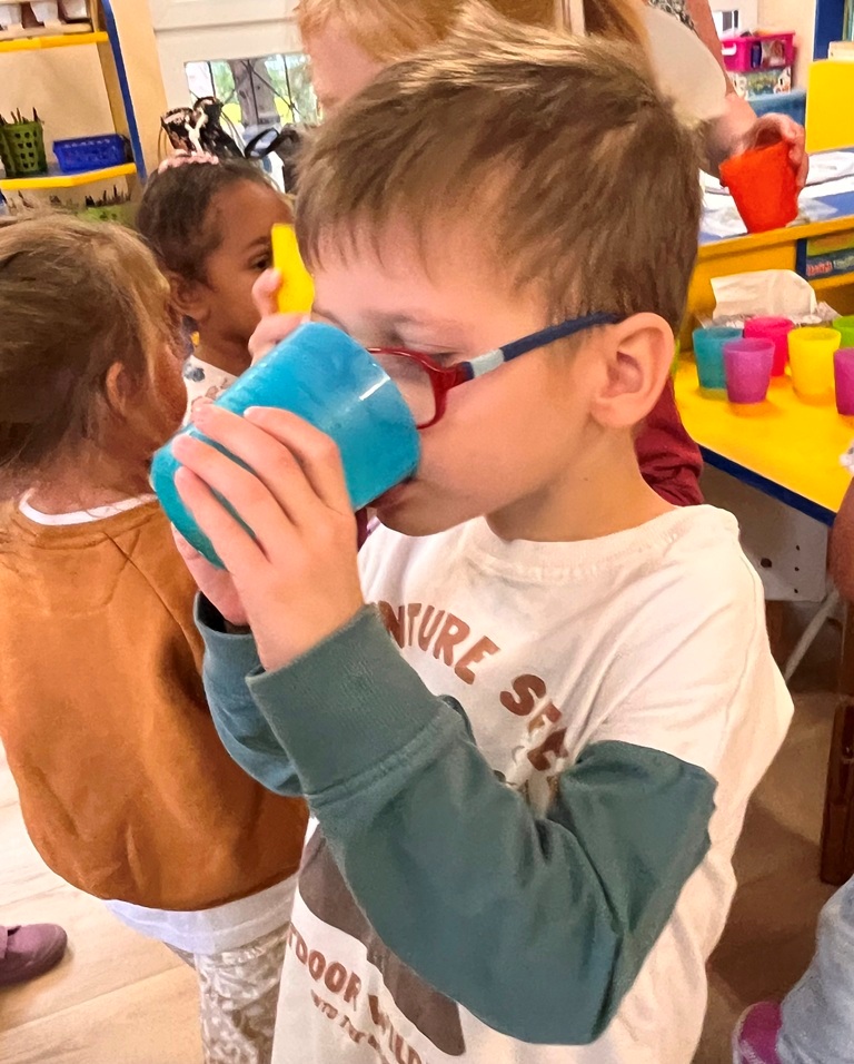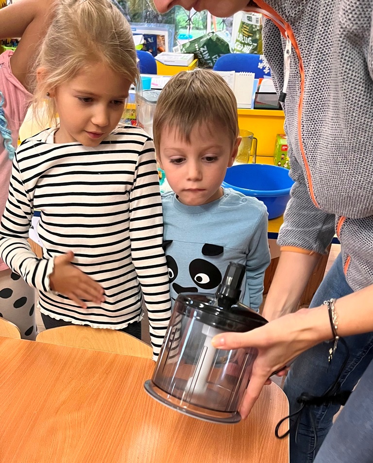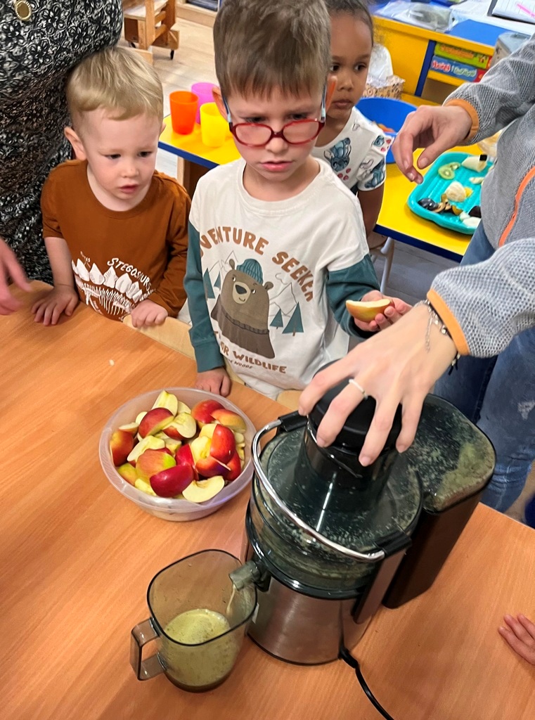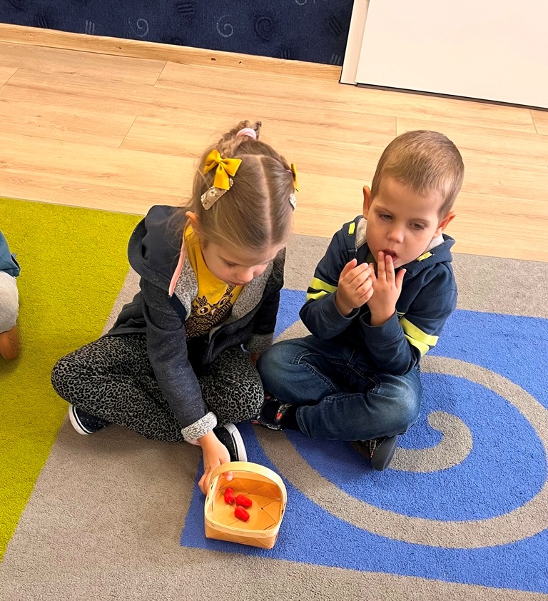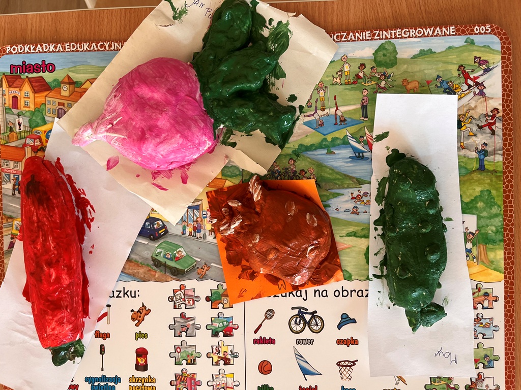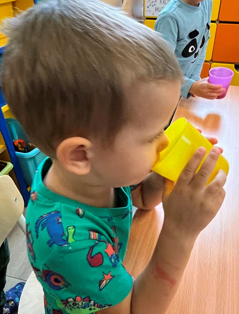 Jesień pełna warzyw i owoców zawitała do nas. Dzieci podczas całego tygodnia poznawały owoce wszystkimi zmysłami- kosztowały, dotykały, piły sok, lepiły, rysowały i zgadywały. Wybrały się na wycieczkę do sklepu i wykonały z masy solnej warzywa, które potem pomalowały.