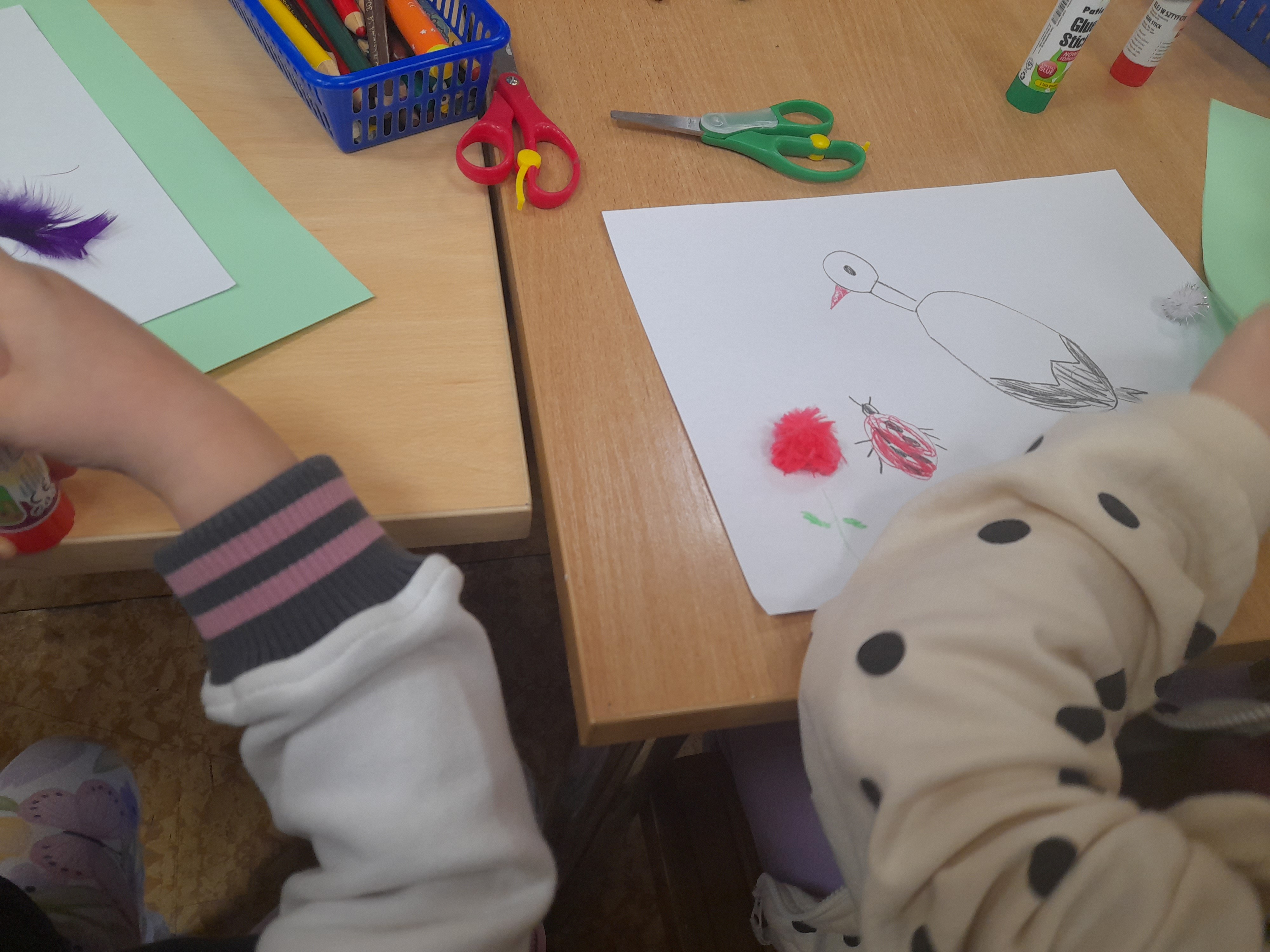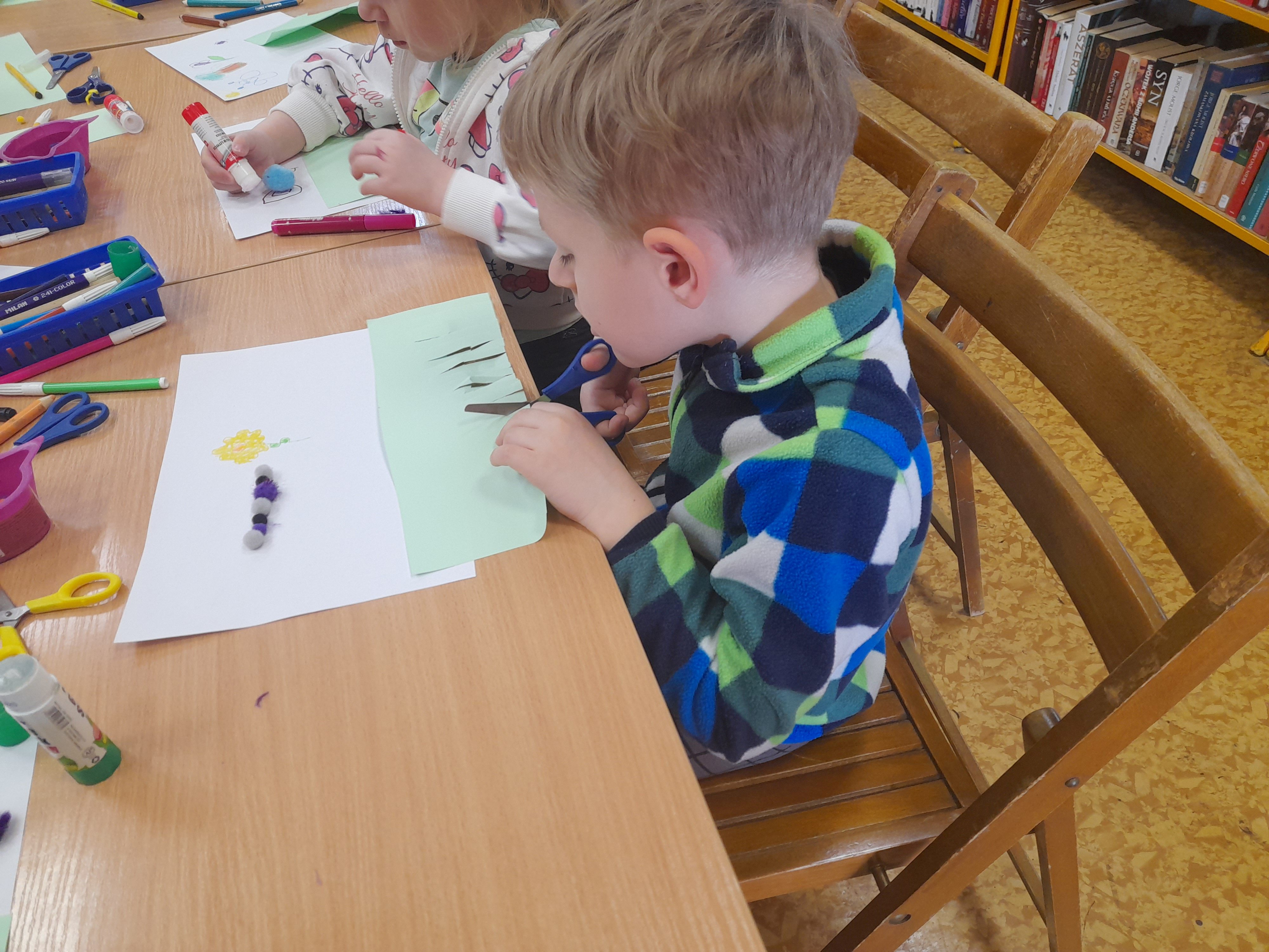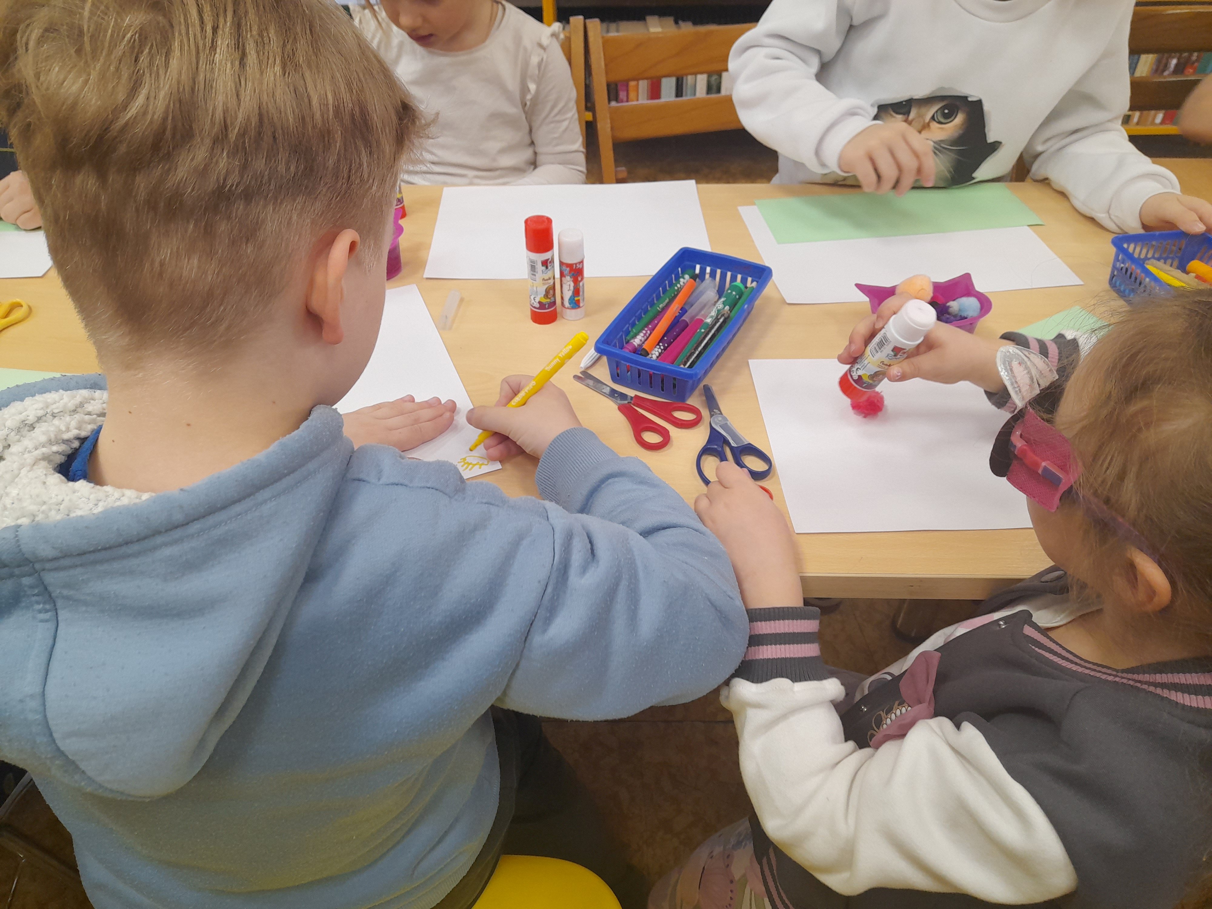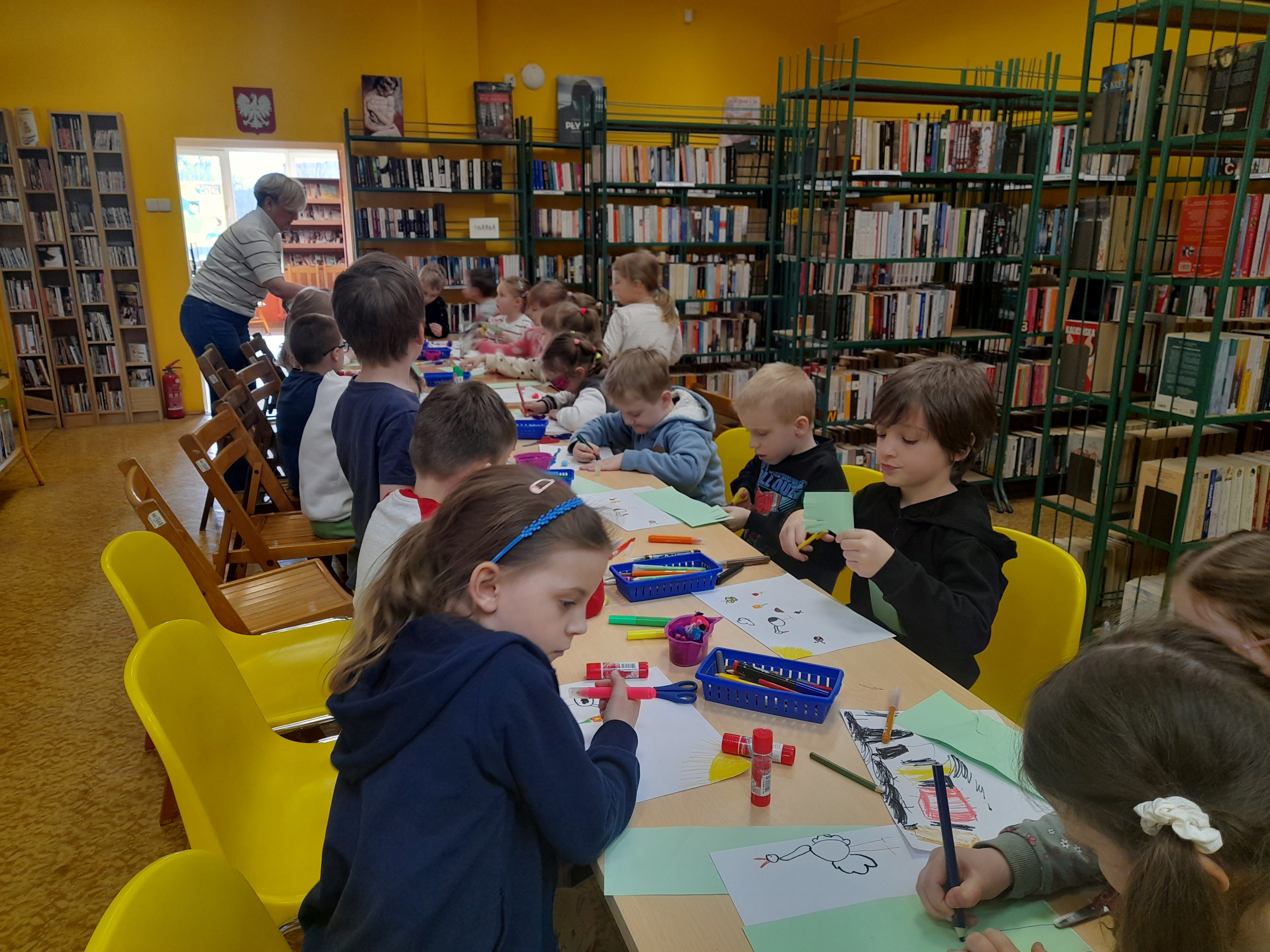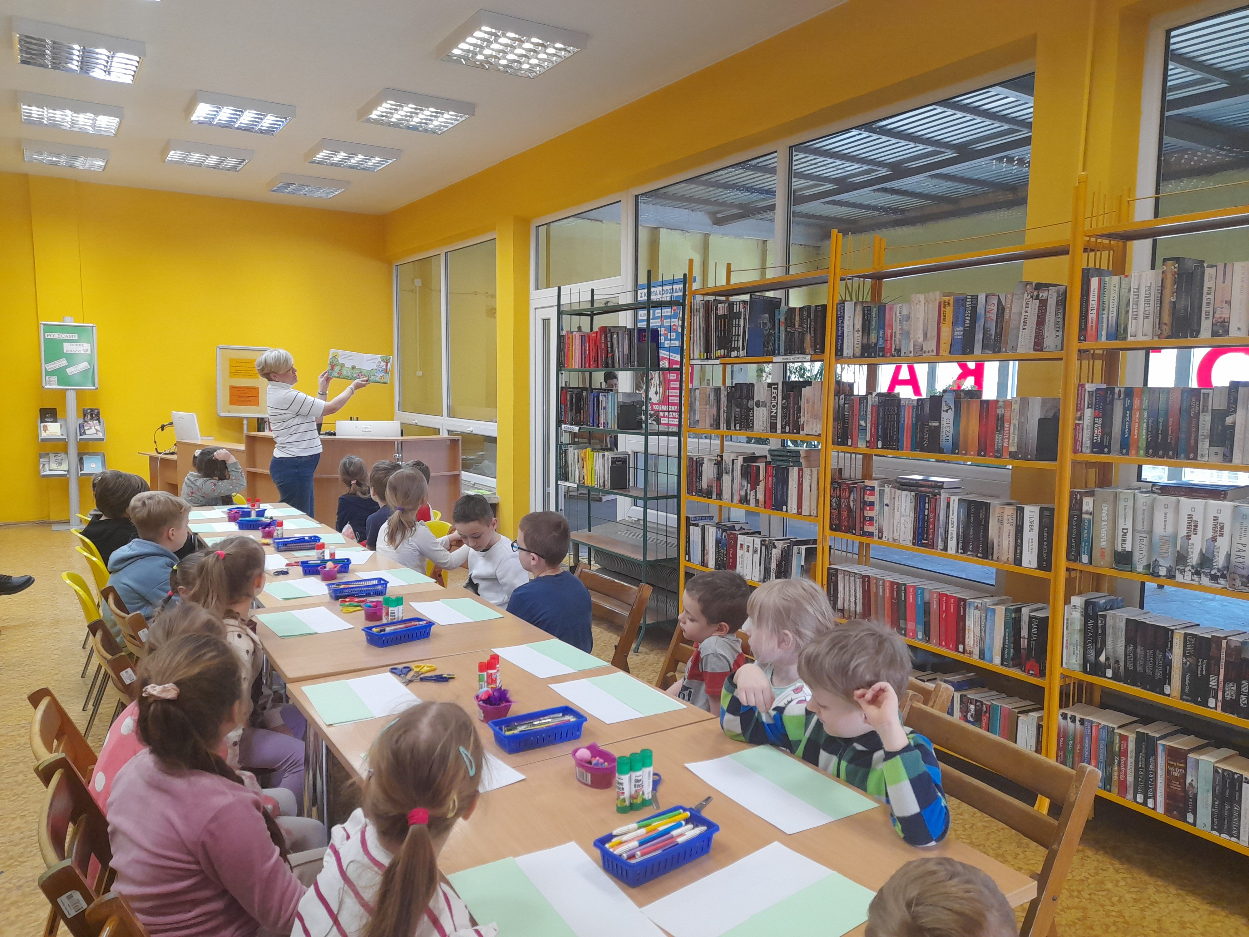 Najstarsze dzieci z naszego przedszkola wybrały się do pobliskiej biblioteki na zajęcia. Dzieci wysłuchały bajki czytanej przez Panią pracującą w bibliotece, o tematyce wiosennej a następnie wykonały wiosenną pracę plastyczną. Zajęcia bardzo podobały się dzieciom.