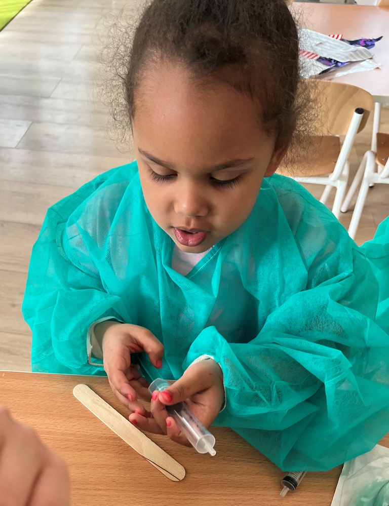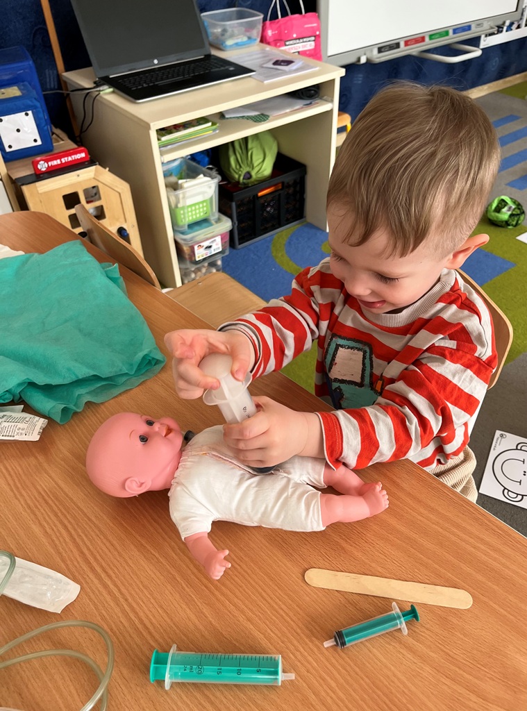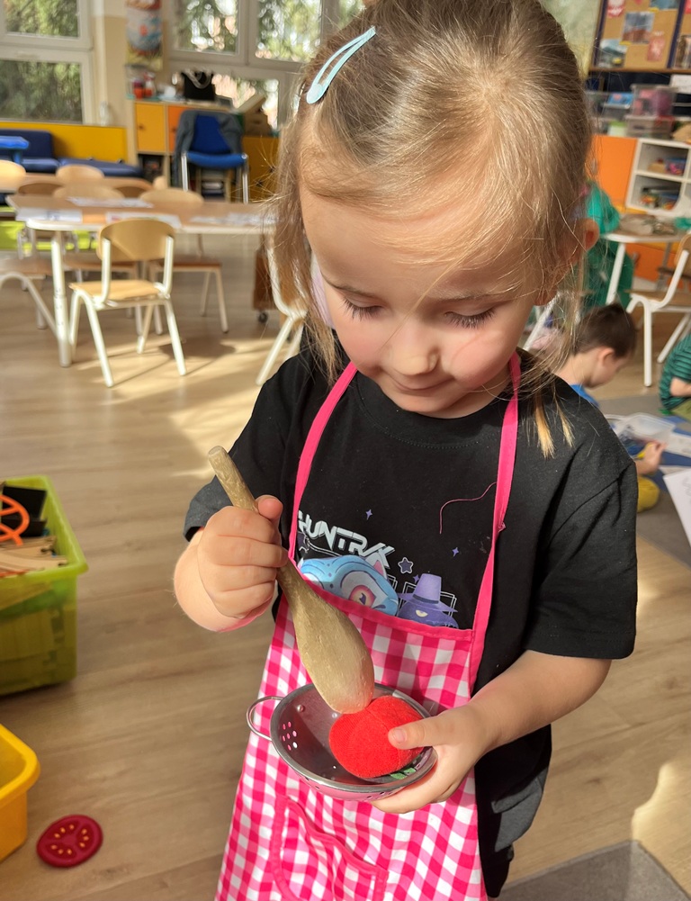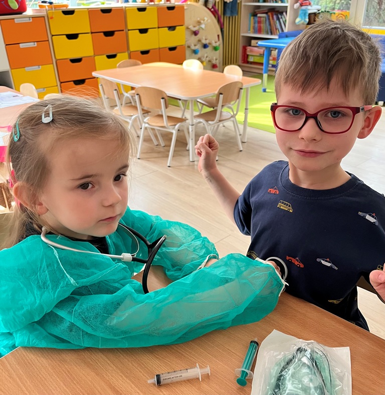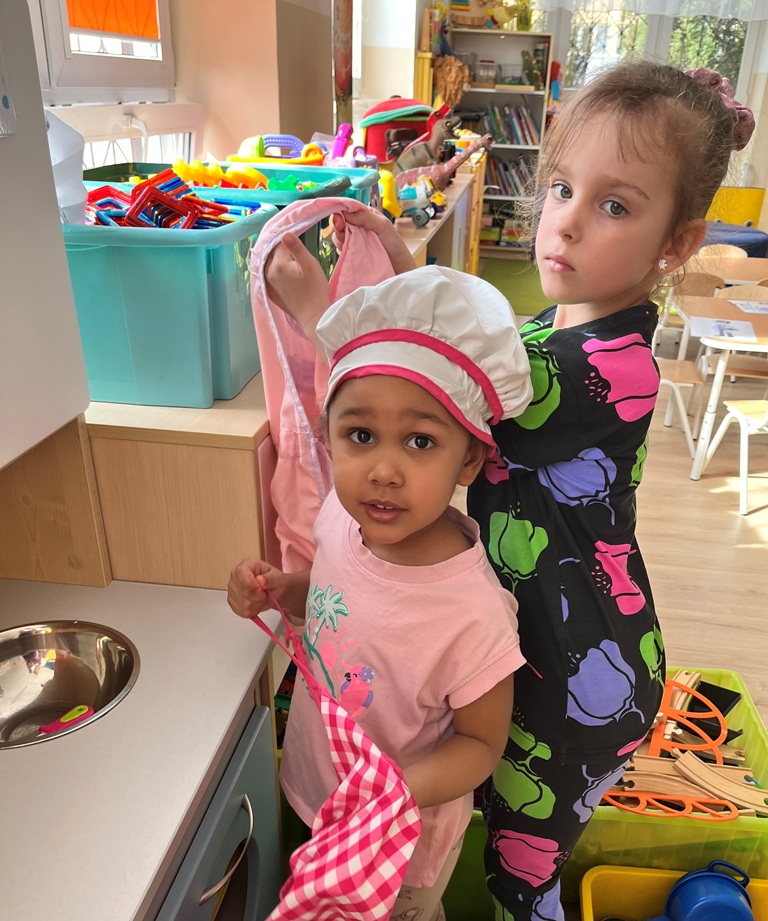 Najlepszym sposobem poznawanie zawodów jest zabawa w odgrywanie ról. Dzieci miały przygotowane kąciki, w których odgrywały rolę: kucharza,lekarza, krawcowej i fryzjera. Poprzez takie działania, dzieci uczą się doceniać różnorodność pracy dorosłych i odkrywają swoje zainteresowania.