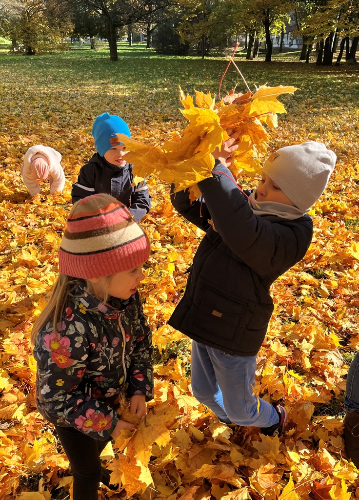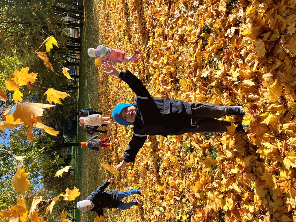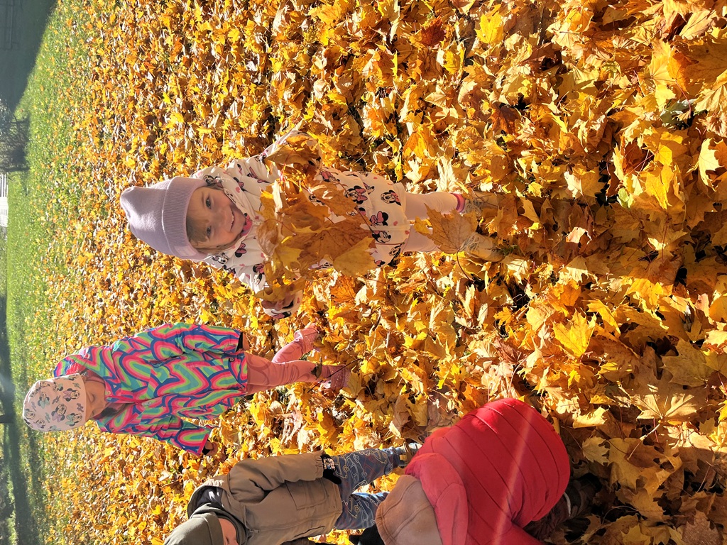 W naszym parku jesień rozkwitła. Zabawy w liściach przyniosły dzieciom dużo radości.